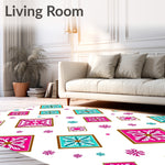 Ultra Soft Area Rug, Non Slip, Stain Resistant, Washable Area Rugs for Living Room, Bedroom, Festive Interlocking Array with Cheerful Snowflake Details(Pink) Overview: