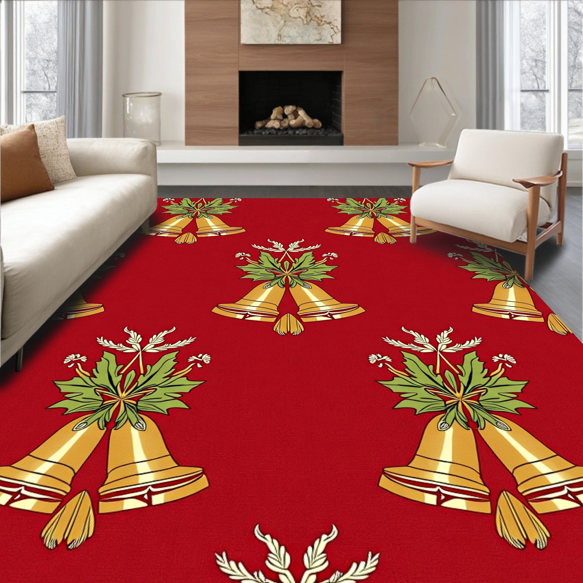 Ultra Soft Area Rug, Non Slip, Stain Resistant, Washable Area Rugs for Living Room, Bedroom, Festive Jingle Bells Half Moon Doorway Welcome(Red) Overview: