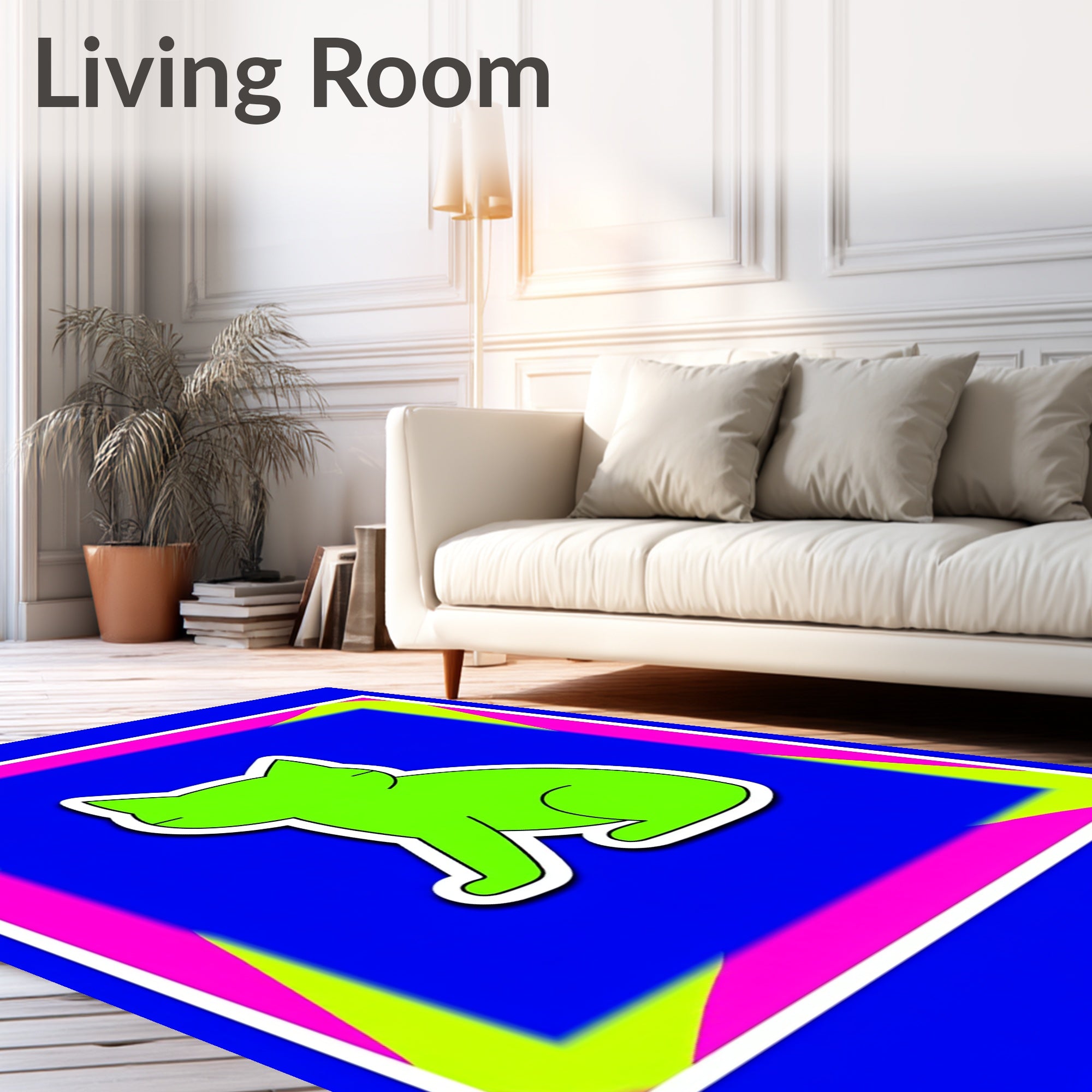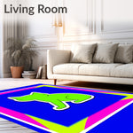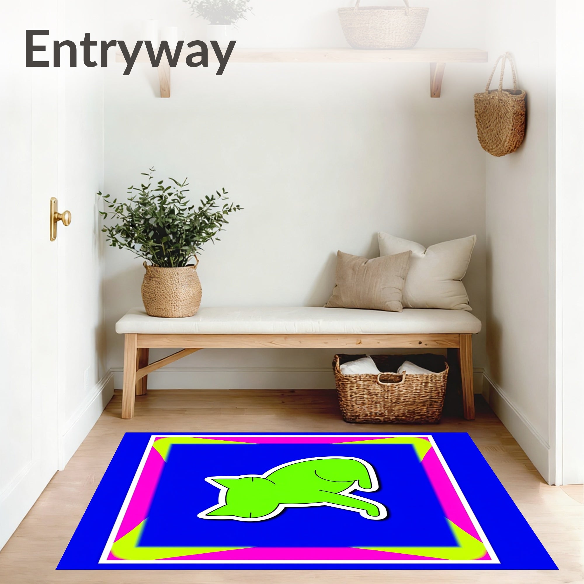 Ultra Soft Area Rug, Non Slip, Stain Resistant, Washable Area Rugs for Living Room, Bedroom, Festive Kitty with Multicolored Trim(Blue) Overview:
