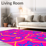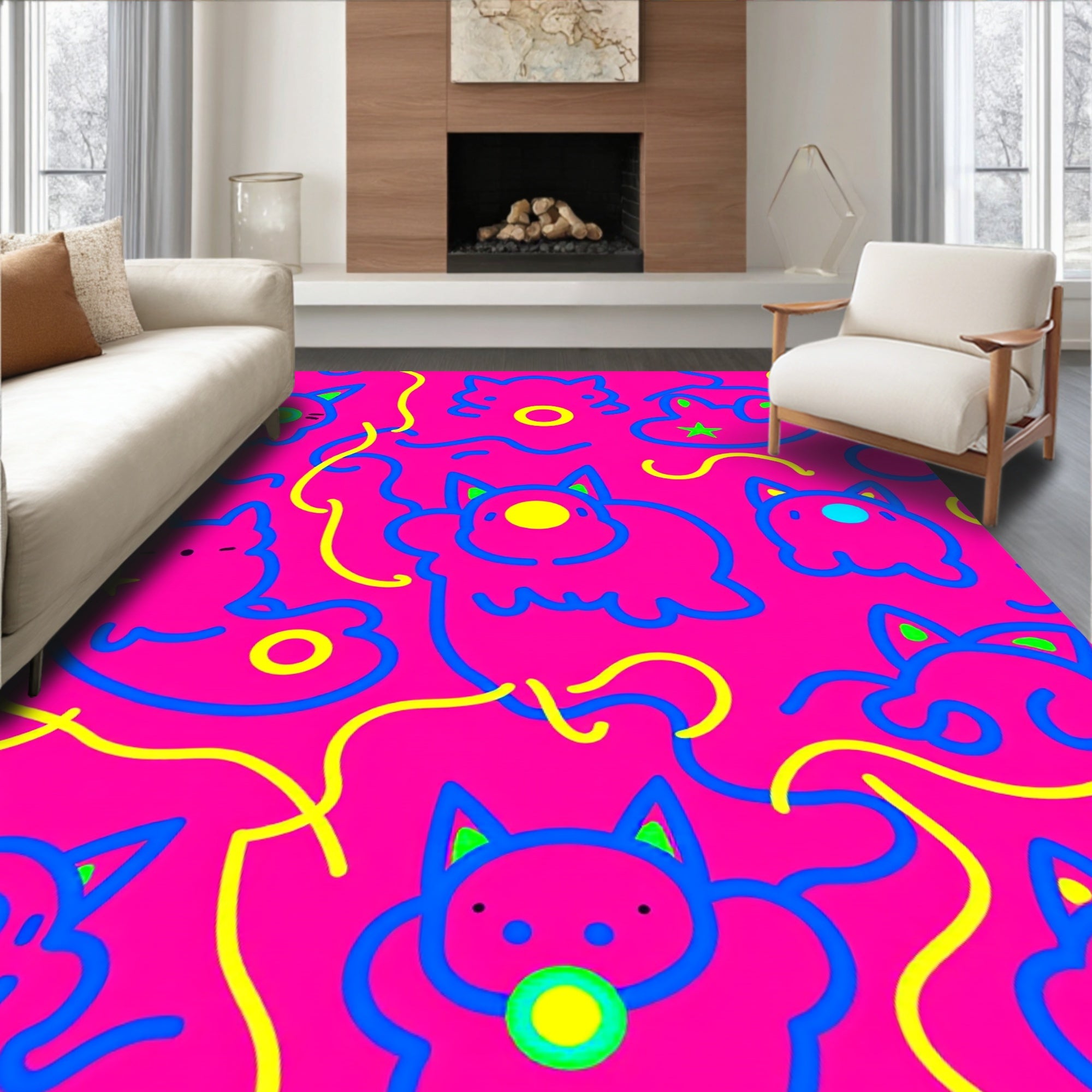 Ultra Soft Area Rug, Non Slip, Stain Resistant, Washable Area Rugs for Living Room, Bedroom, Festive Lights Featuring Whimsical Cat Silhouettes(Pink) Overview: