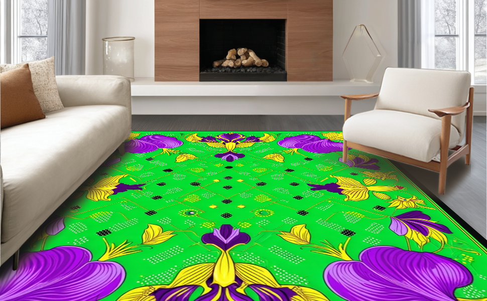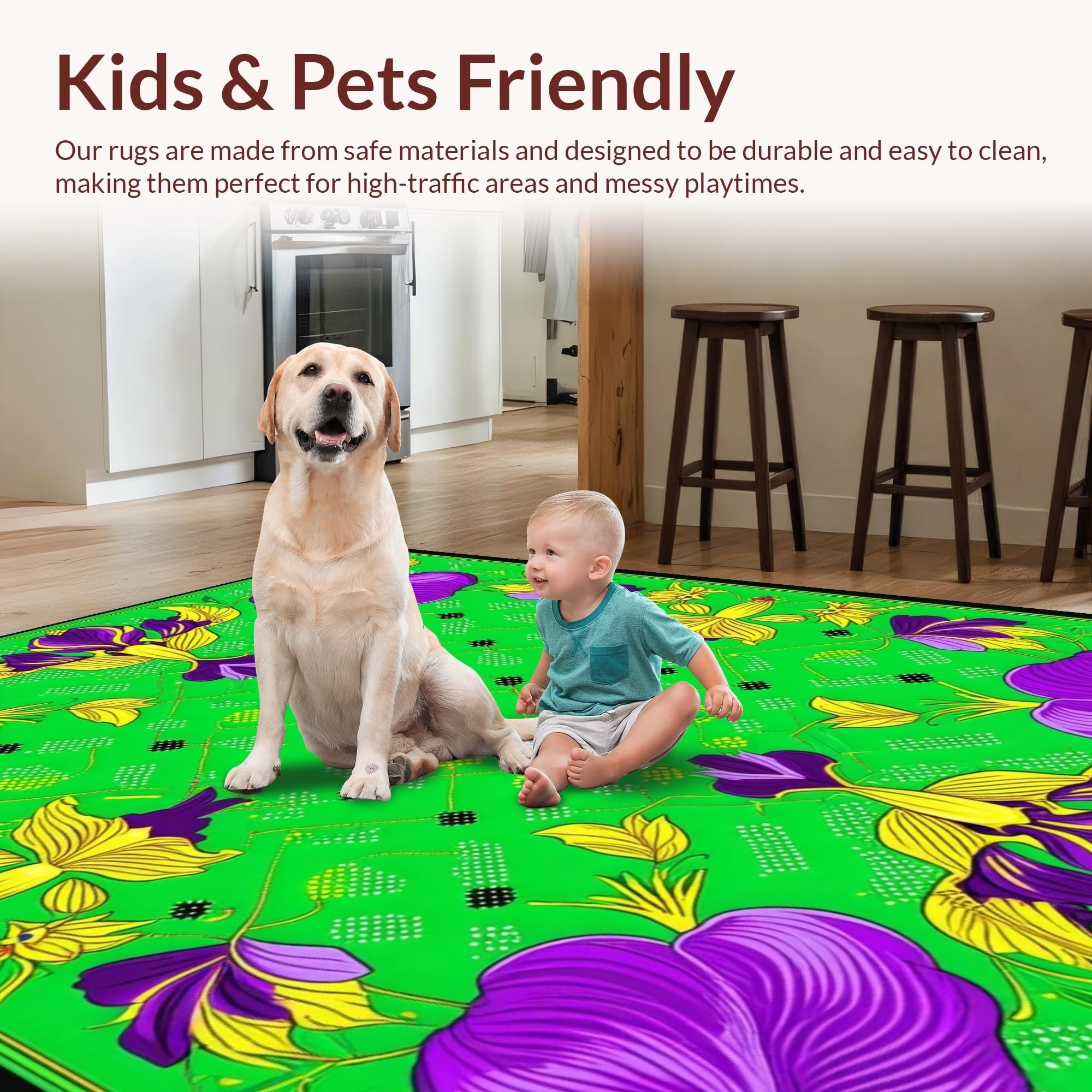 Ultra Soft Area Rug, Non Slip, Stain Resistant, Washable Area Rugs for Living Room, Bedroom, Festive Lobster Iris Motif(Green) Overview: