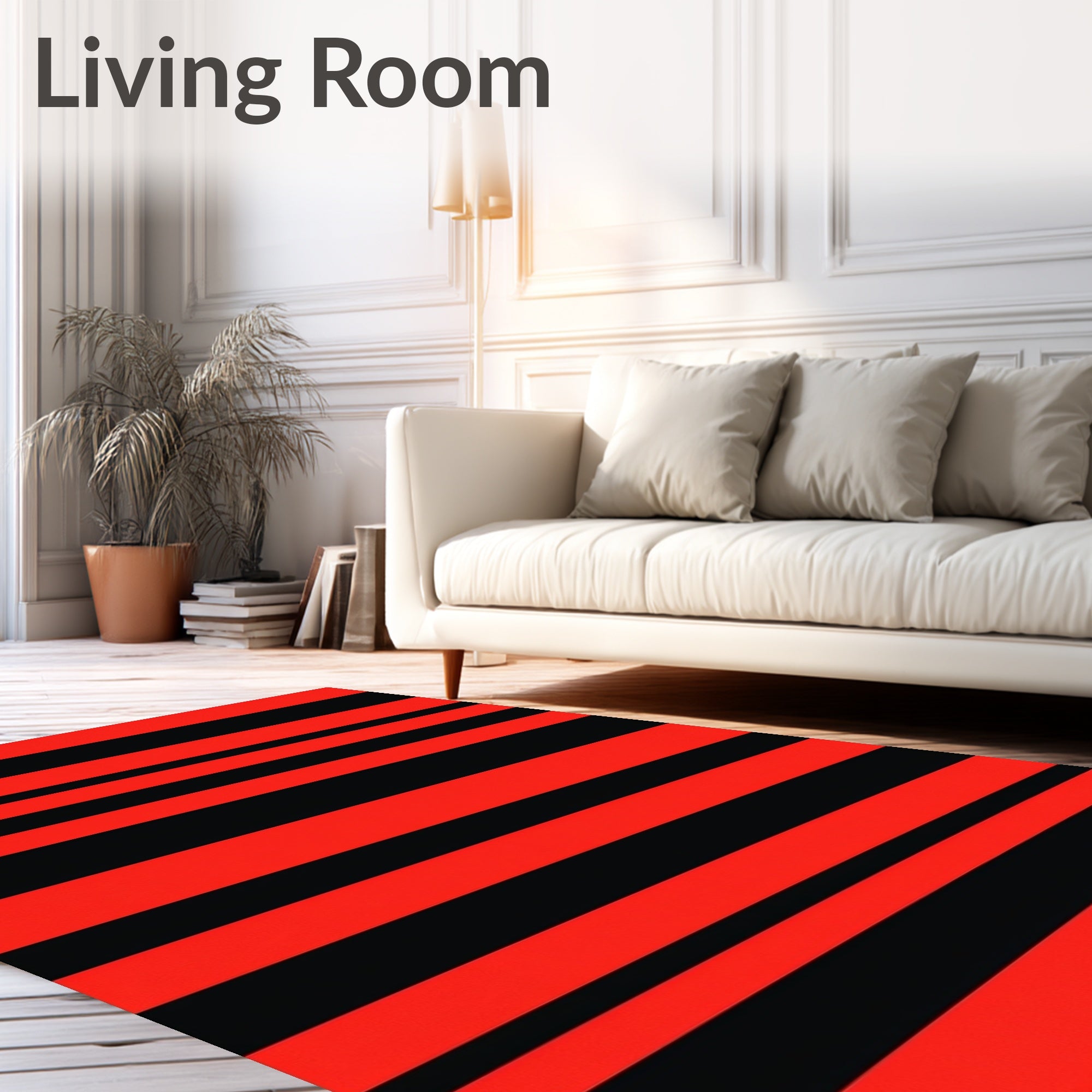 Ultra Soft Area Rug, Non Slip, Stain Resistant, Washable Area Rugs for Living Room, Bedroom, Festive Lumberjack Stripe Entrance with Bold Country Motif(Red) Overview: