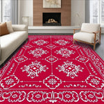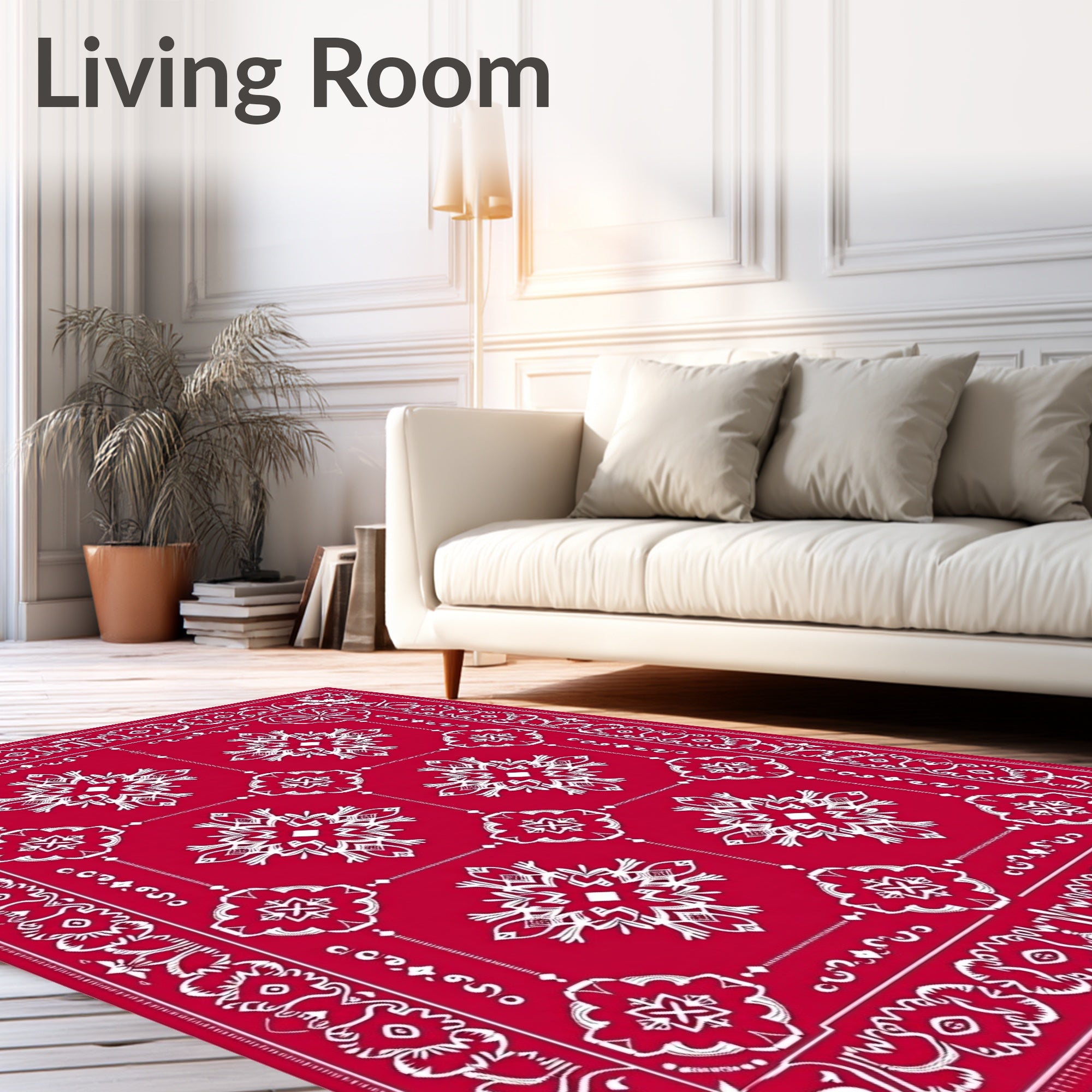 Ultra Soft Area Rug, Non Slip, Stain Resistant, Washable Area Rugs for Living Room, Bedroom, Festive Mosaic with Interlocking Holiday Flourishes(Red) Overview: