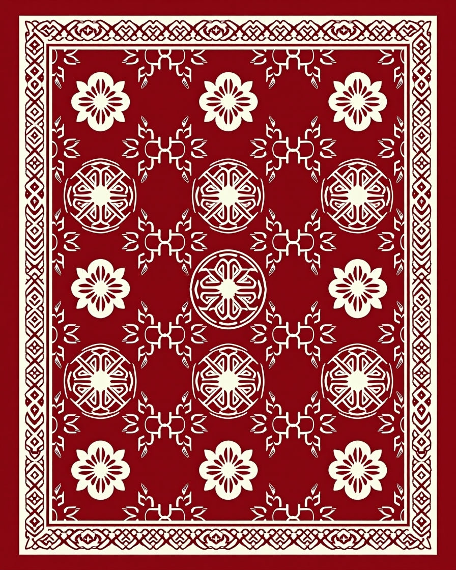 Festive Nordic Inspired Interlocking Motifs with Vintage Charm(Red)