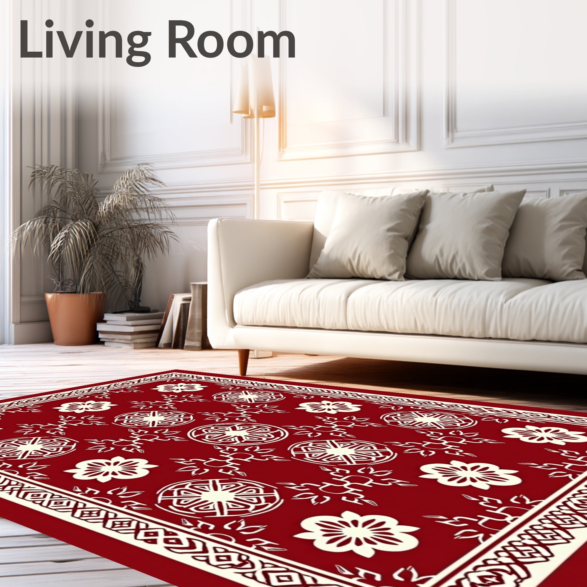 Ultra Soft Area Rug, Non Slip, Stain Resistant, Washable Area Rugs for Living Room, Bedroom, Festive Nordic Inspired Interlocking Motifs with Vintage Charm(Red) Overview: