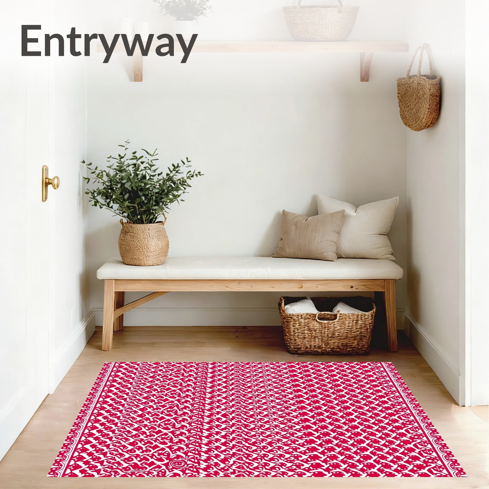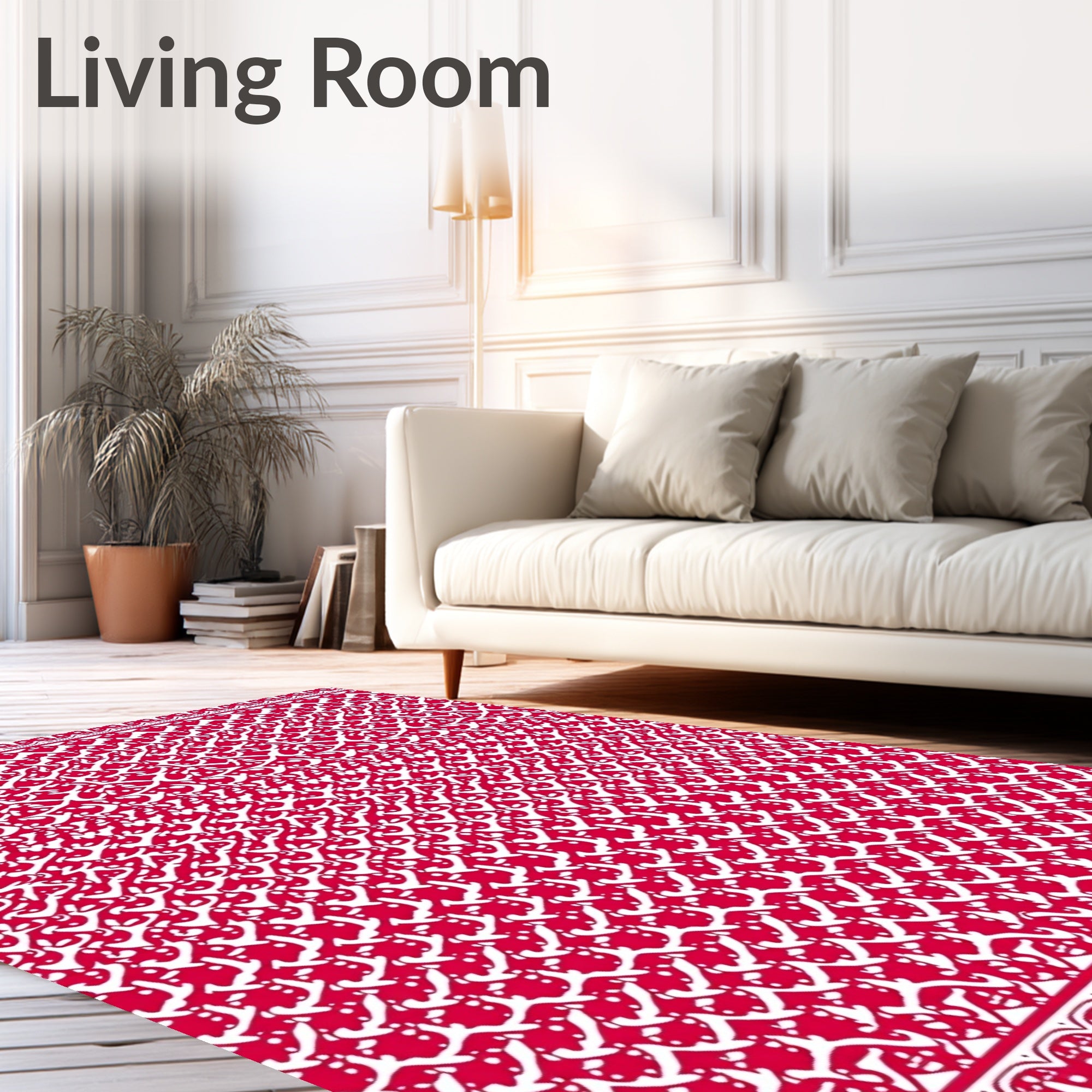 Ultra Soft Area Rug, Non Slip, Stain Resistant, Washable Area Rugs for Living Room, Bedroom, Festive Nordic Lattice Interlocking Snow Petal Mosaic Inspired by Winter(Red) Overview: