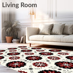 Ultra Soft Area Rug, Non Slip, Stain Resistant, Washable Area Rugs for Living Room, Bedroom, Festive Nordic Snowflake Medallion Tapestry Design(Red) Overview: