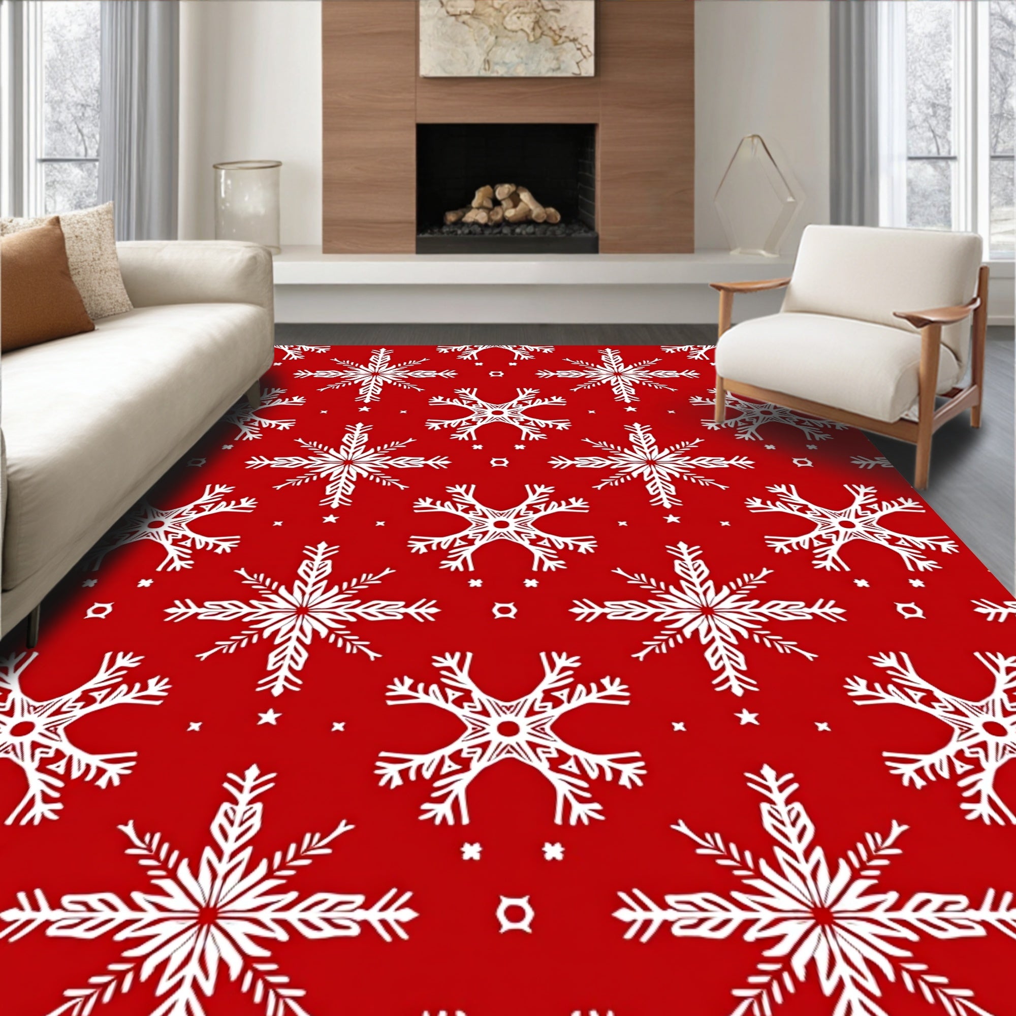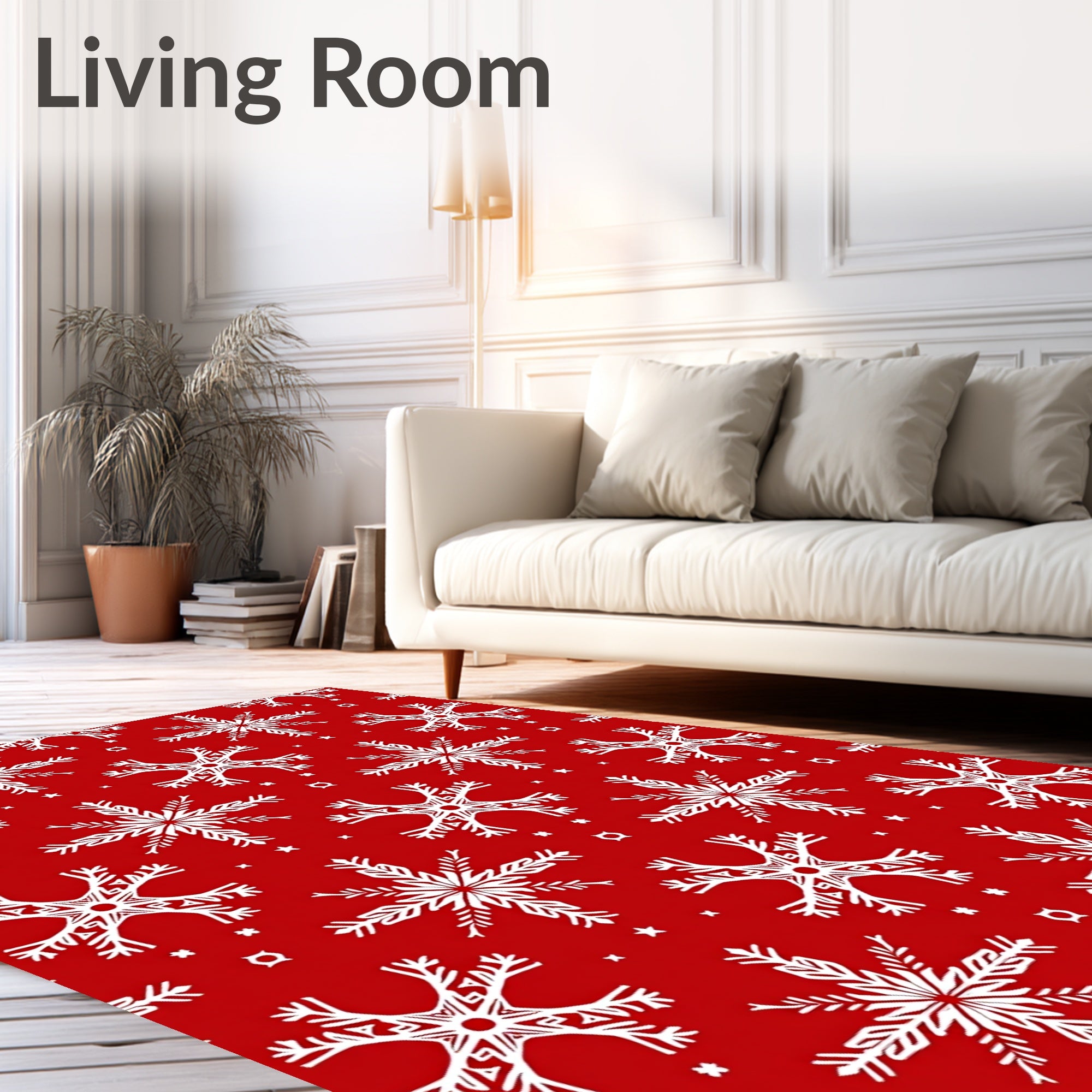 Ultra Soft Area Rug, Non Slip, Stain Resistant, Washable Area Rugs for Living Room, Bedroom, Festive Nordic Snowflake Motif with Interlocking Accents Holiday(Red) Overview: