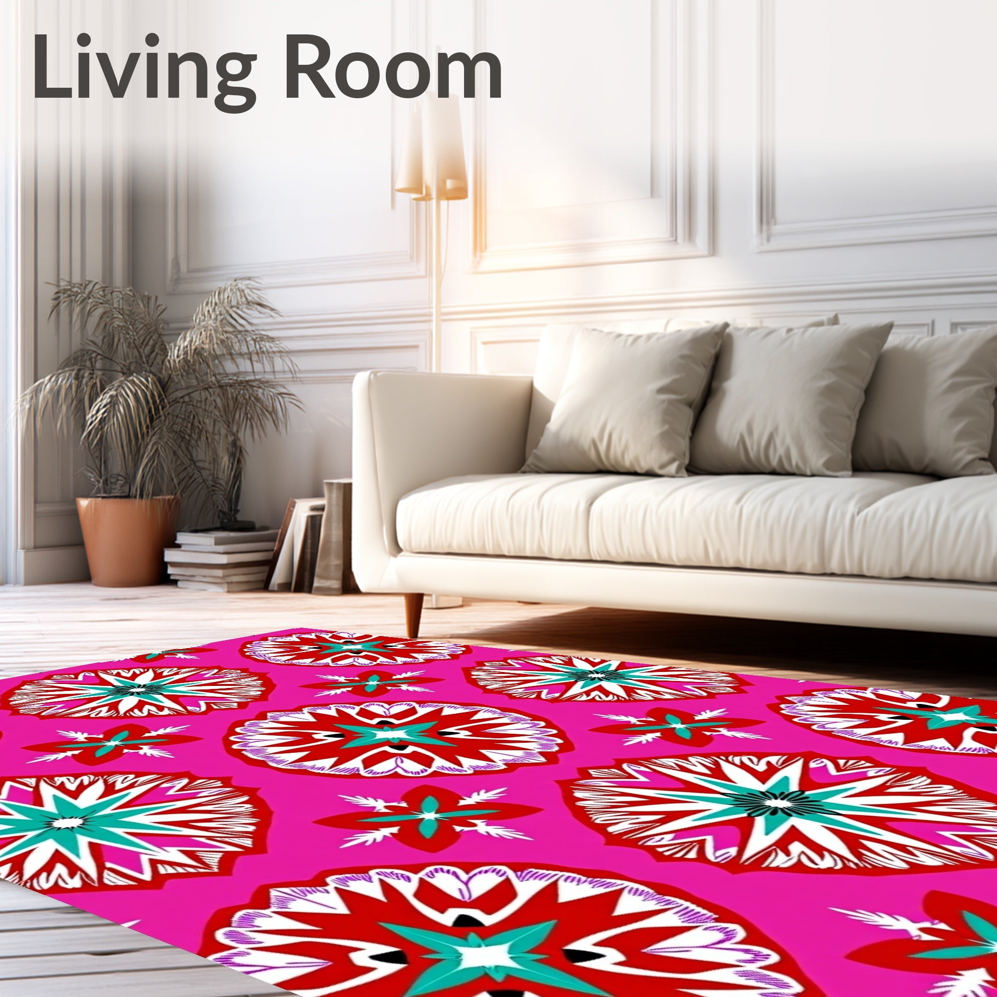 Ultra Soft Area Rug, Non Slip, Stain Resistant, Washable Area Rugs for Living Room, Bedroom, Festive Nordic Starburst Interlocking Medallion Holiday Accent(Pink) Overview: