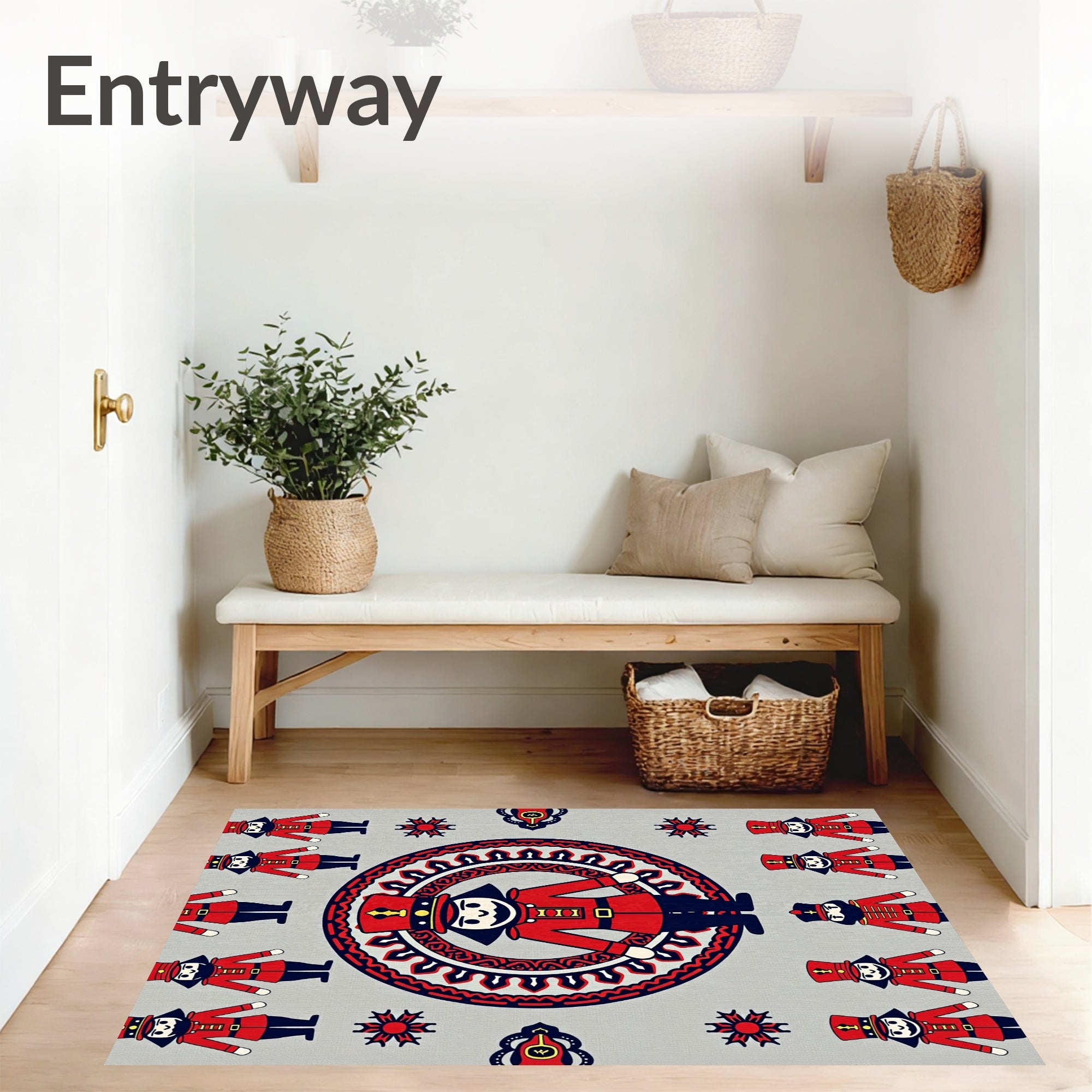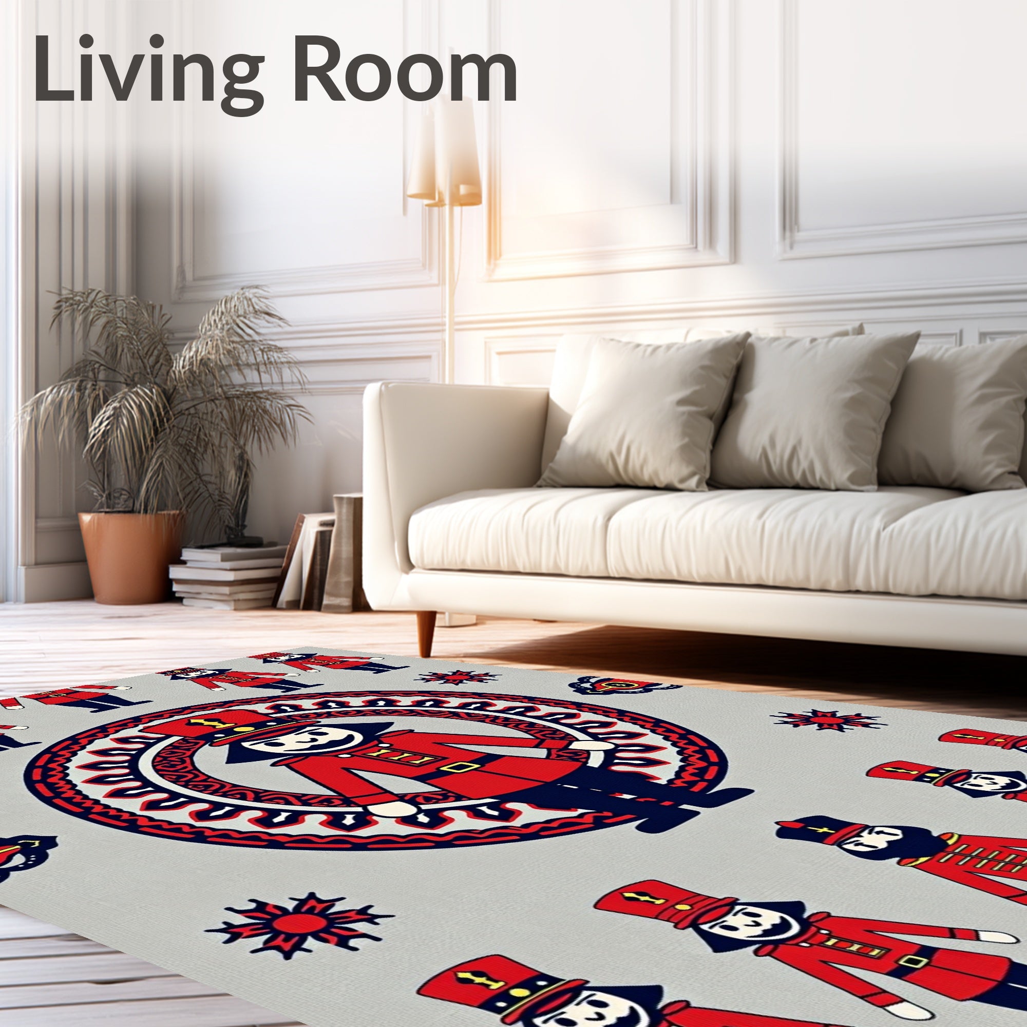 Ultra Soft Area Rug, Non Slip, Stain Resistant, Washable Area Rugs for Living Room, Bedroom, Festive Nutcracker Ballet Medallion(Red) Overview: