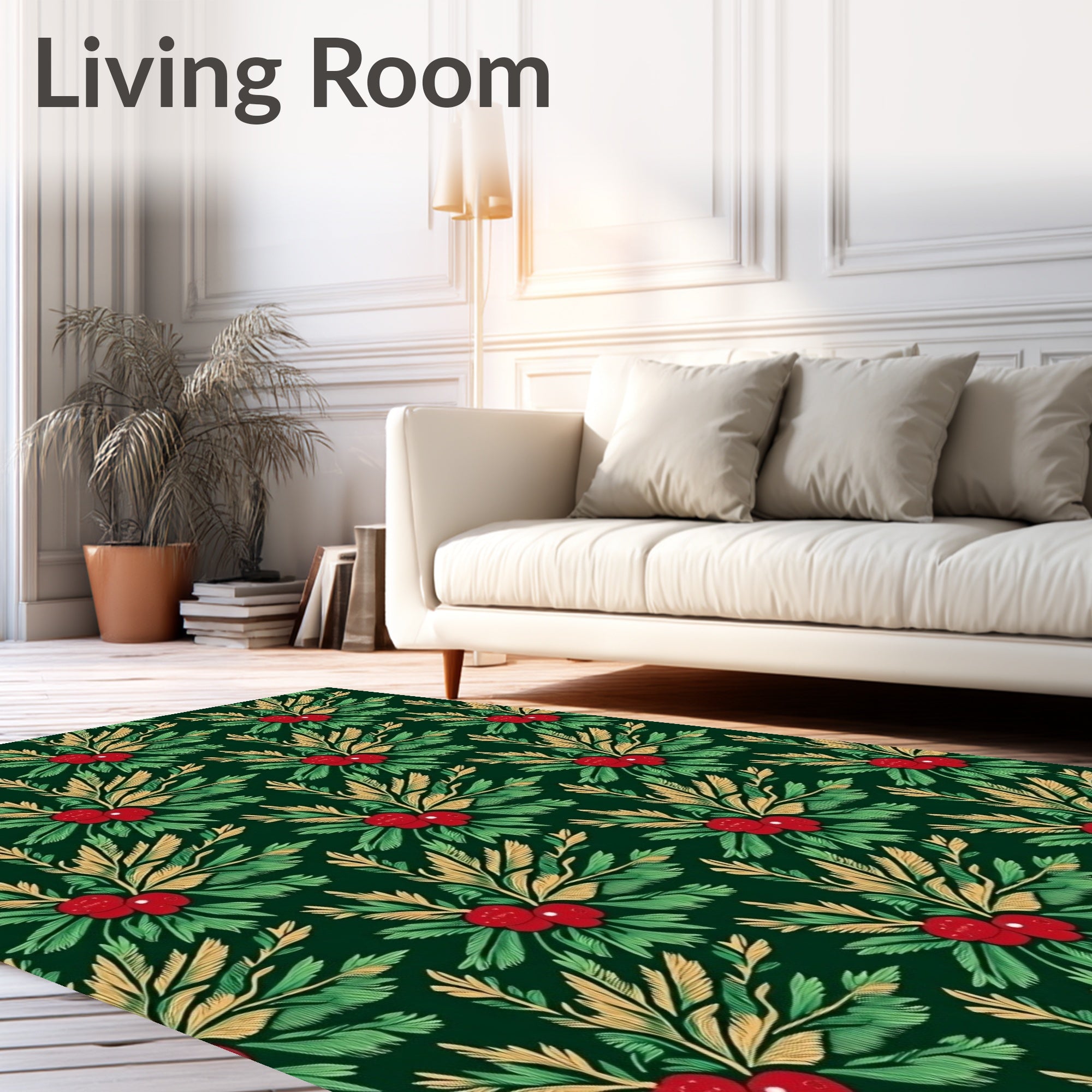 Ultra Soft Area Rug, Non Slip, Stain Resistant, Washable Area Rugs for Living Room, Bedroom, Festive Pine Branch Tapestry Style Decorative(Green) Overview: