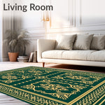 Ultra Soft Area Rug, Non Slip, Stain Resistant, Washable Area Rugs for Living Room, Bedroom, Festive Pine Lattice with Holiday Medallions(Green) Overview:
