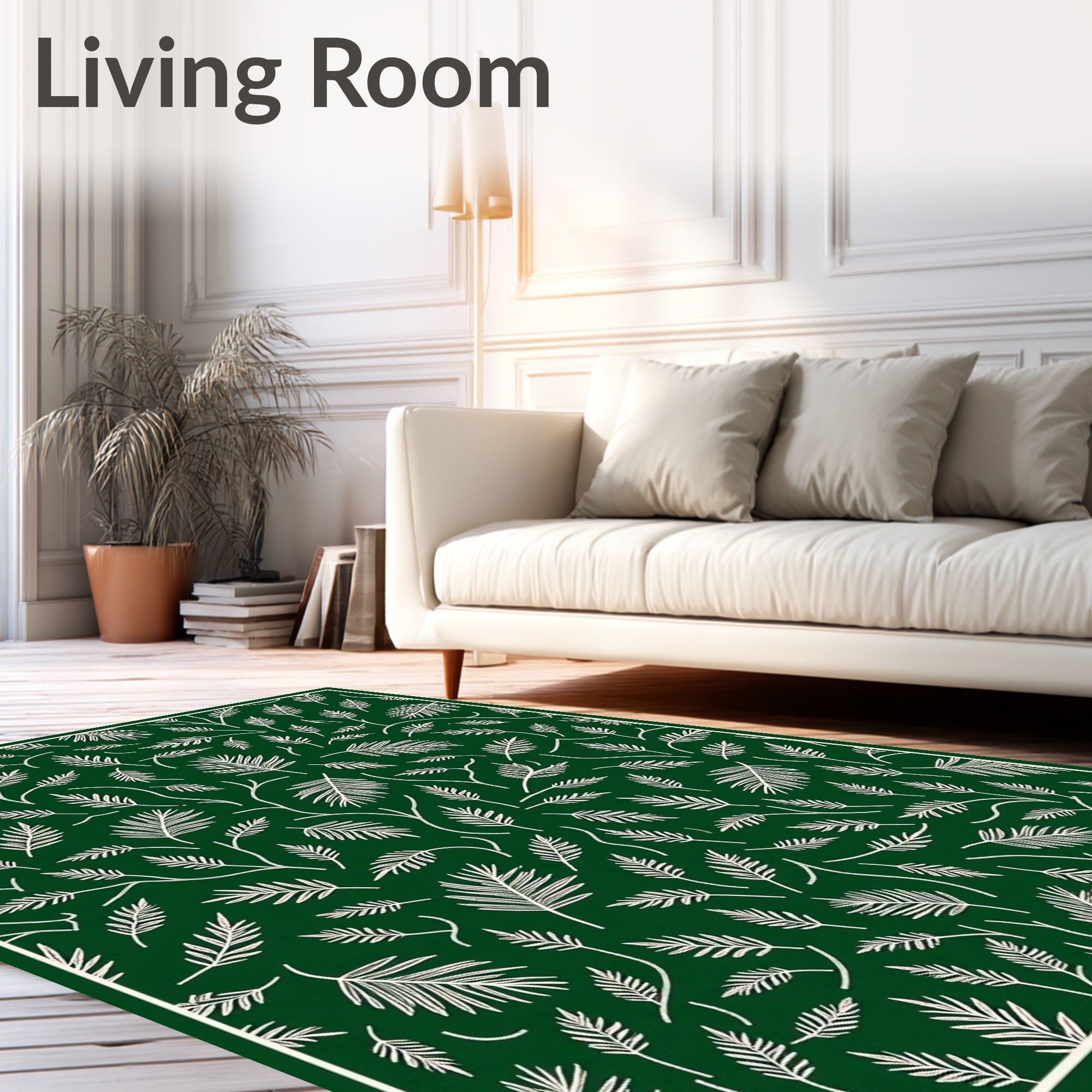 Ultra Soft Area Rug, Non Slip, Stain Resistant, Washable Area Rugs for Living Room, Bedroom, Festive Pine Needle Spiral Design Holiday with Evergreen Swirls(Green) Overview: