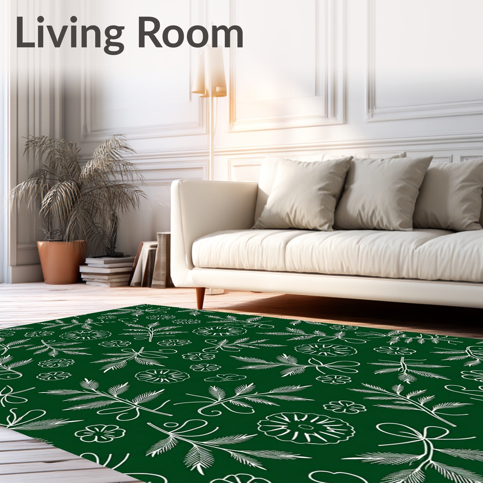 Ultra Soft Area Rug, Non Slip, Stain Resistant, Washable Area Rugs for Living Room, Bedroom, Festive Pine Needle Spiral Design with Holiday Accents(Green) Overview: