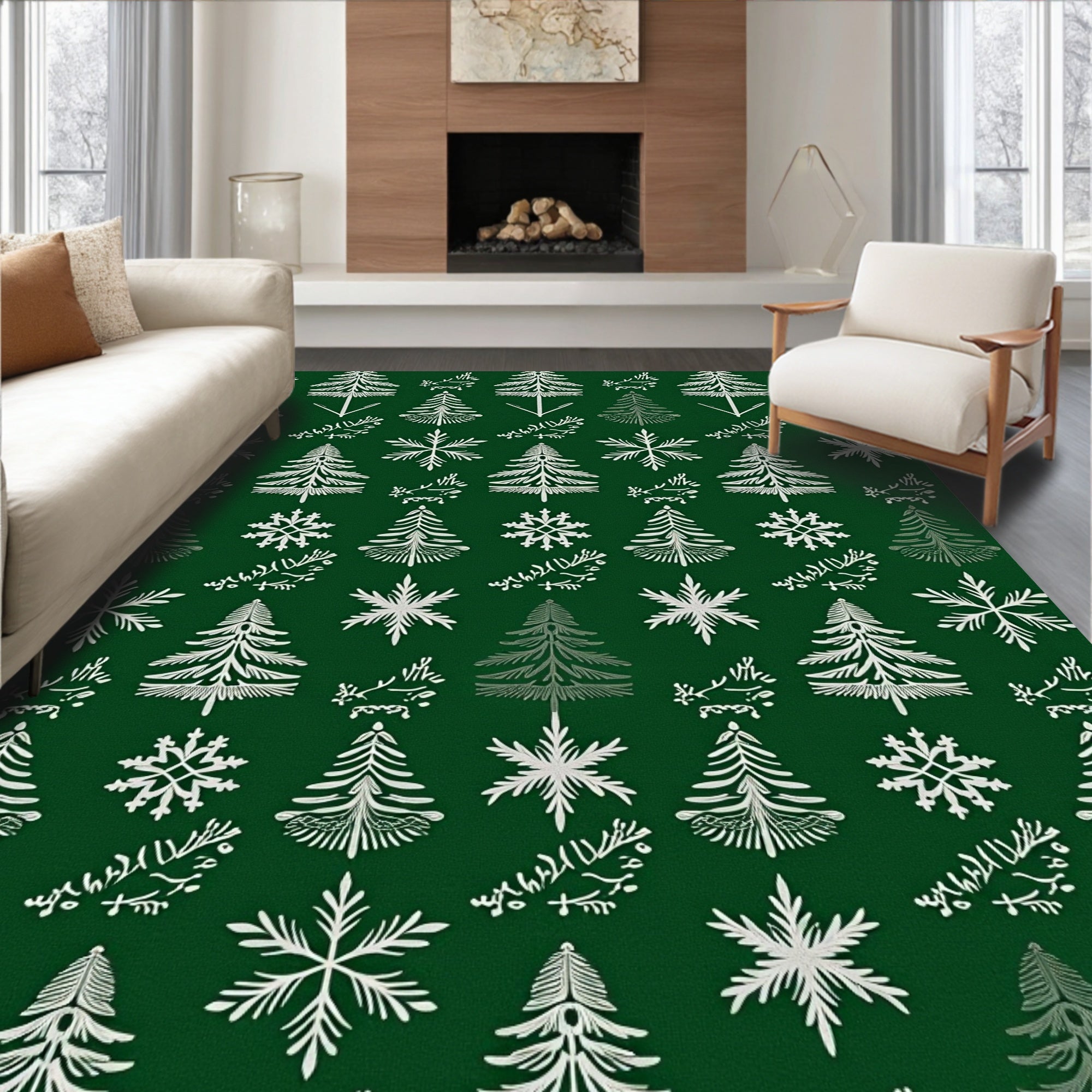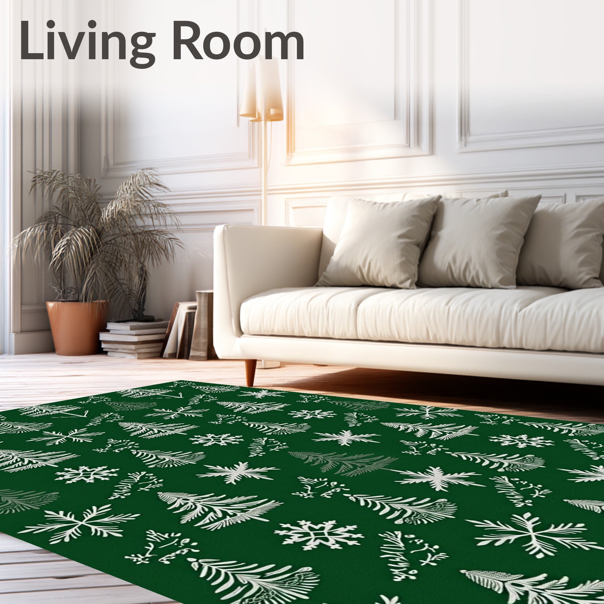 Ultra Soft Area Rug, Non Slip, Stain Resistant, Washable Area Rugs for Living Room, Bedroom, Festive Pine Tree Snowflake Half Moon Decorative Anti Slip Floor(Green) Overview: