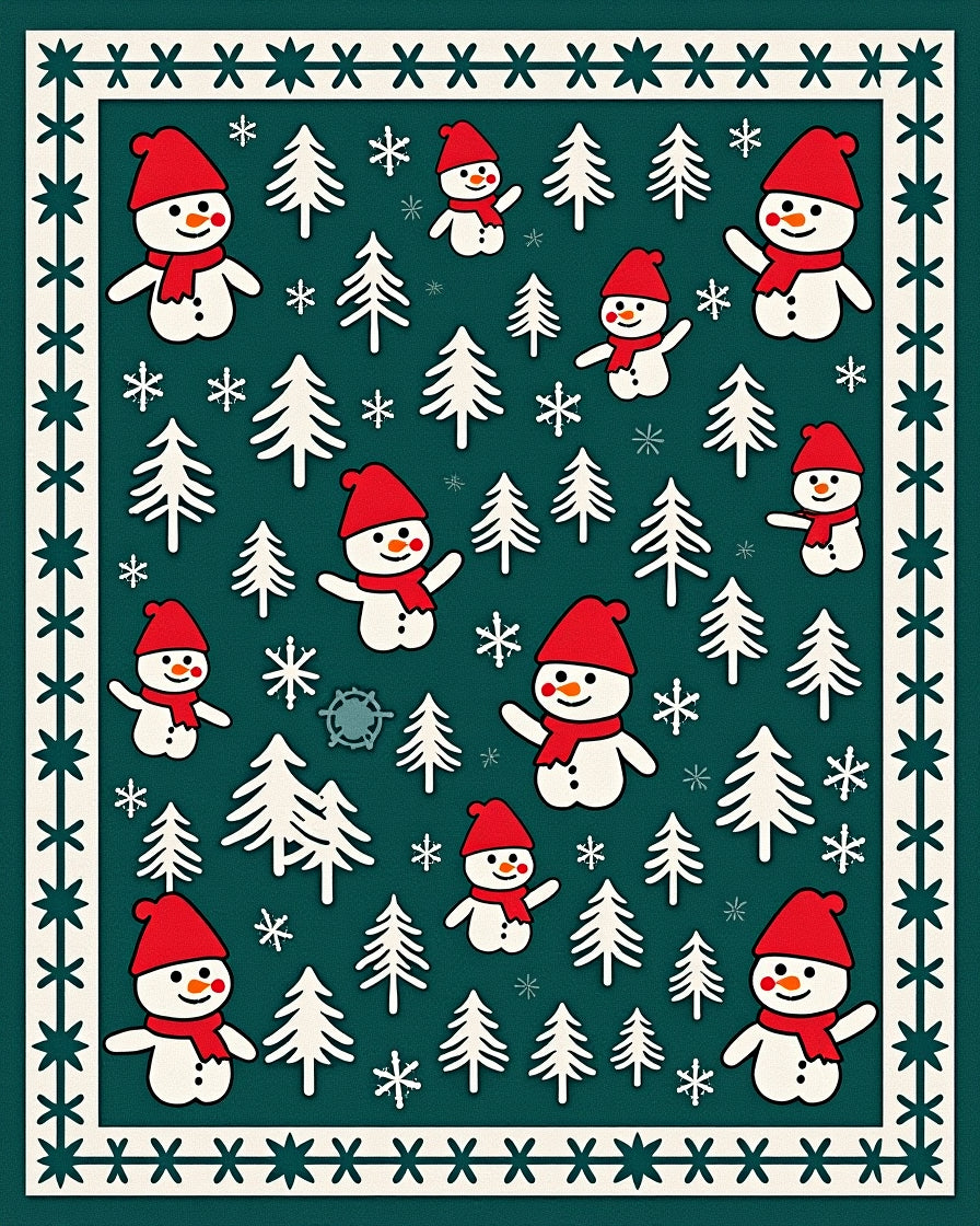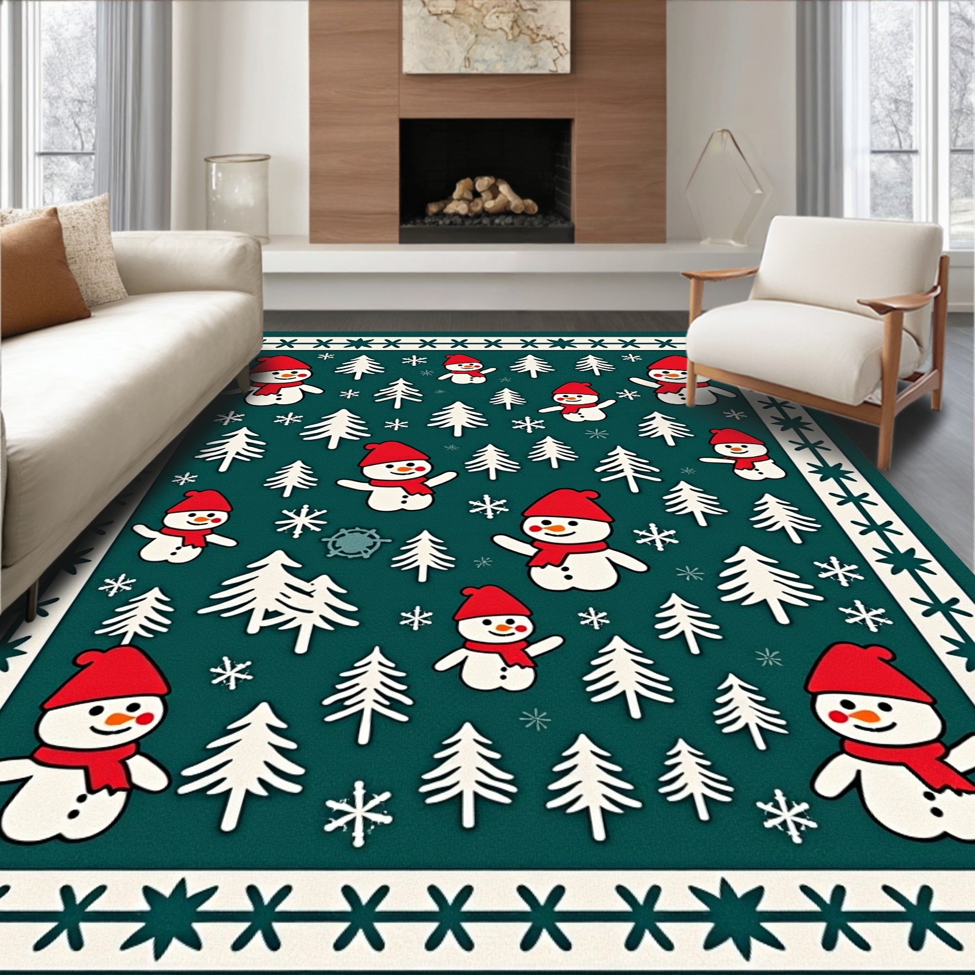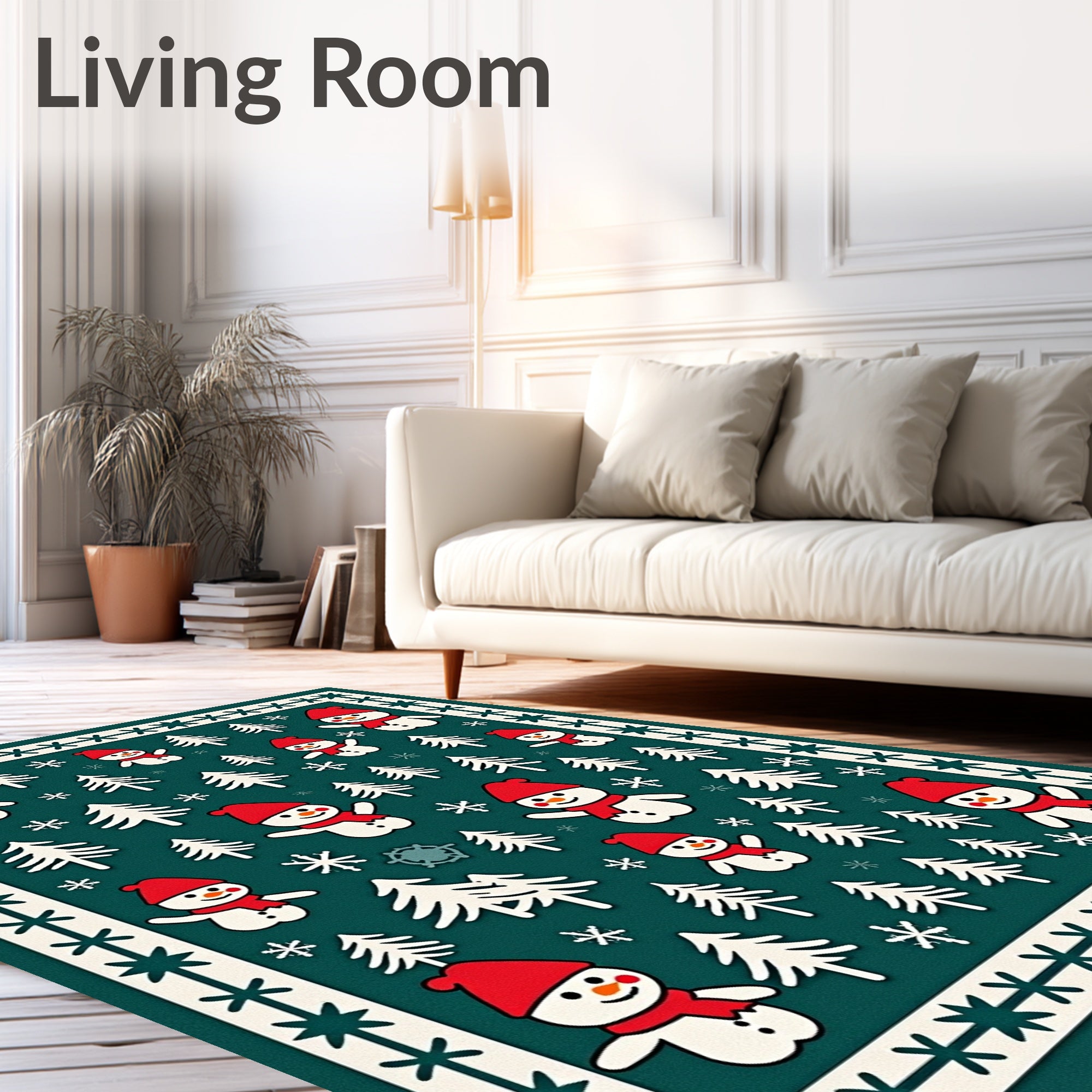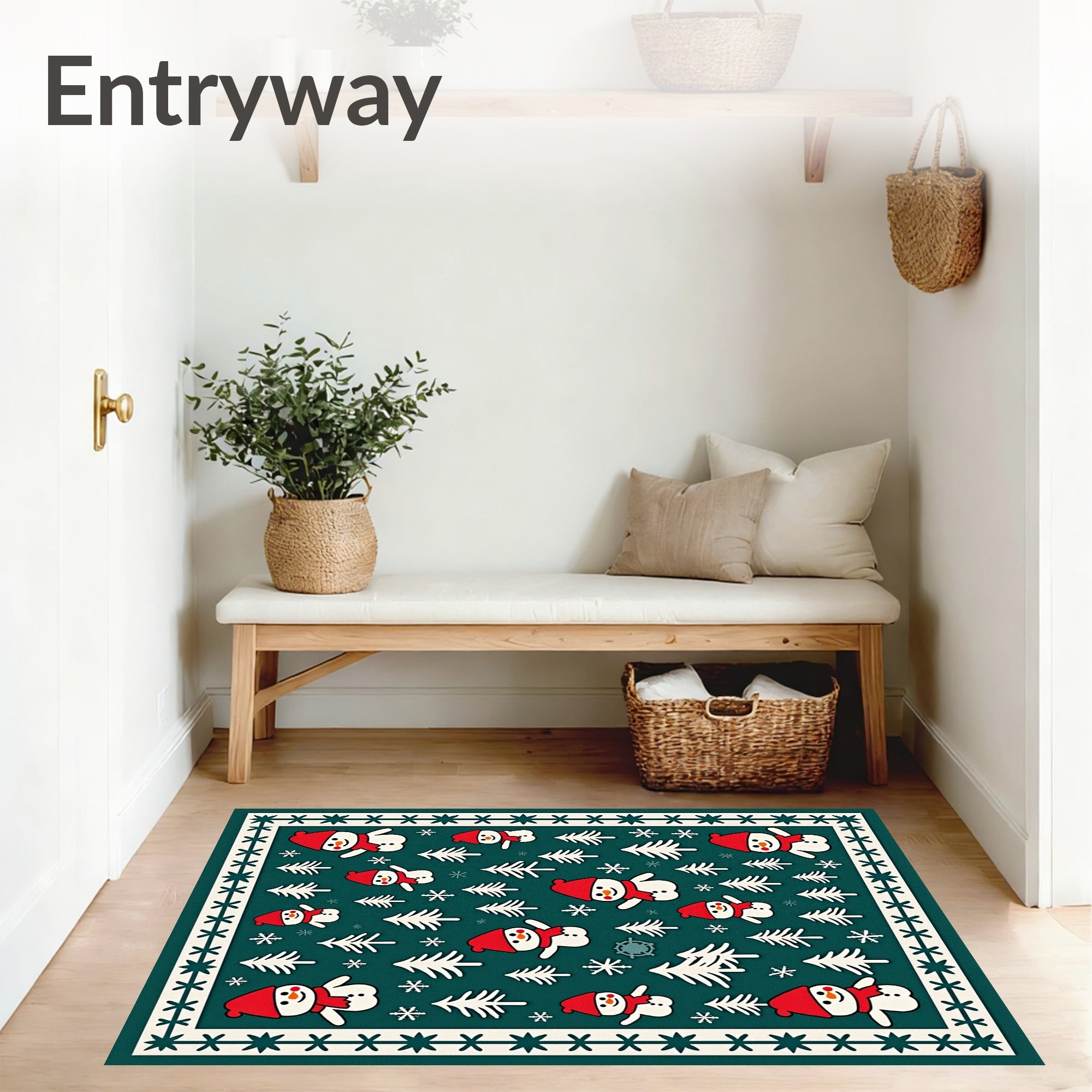 Ultra Soft Area Rug, Non Slip, Stain Resistant, Washable Area Rugs for Living Room, Bedroom, Festive Pine Tree Snowman Half Moon Doormat Holiday Welcome(Teal) Overview: