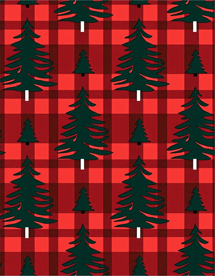 Festive Pine Tree with Checkered Border Holiday(Red)