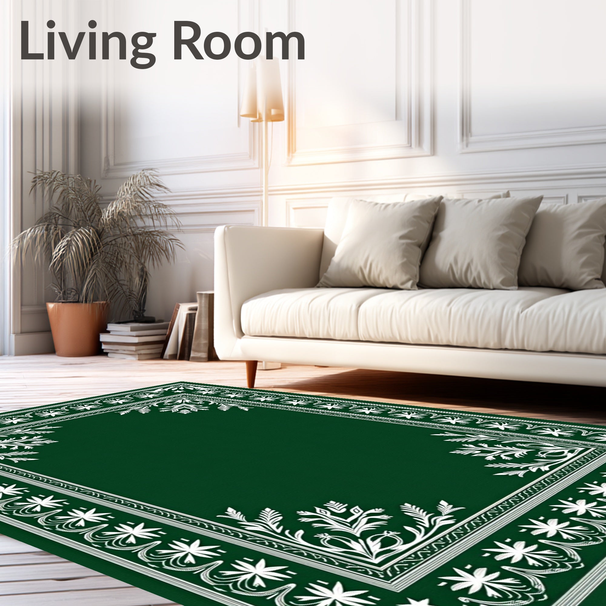 Ultra Soft Area Rug, Non Slip, Stain Resistant, Washable Area Rugs for Living Room, Bedroom, Festive Pine Welcome Snowflake Holiday Entry Decoration(Green) Overview: