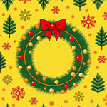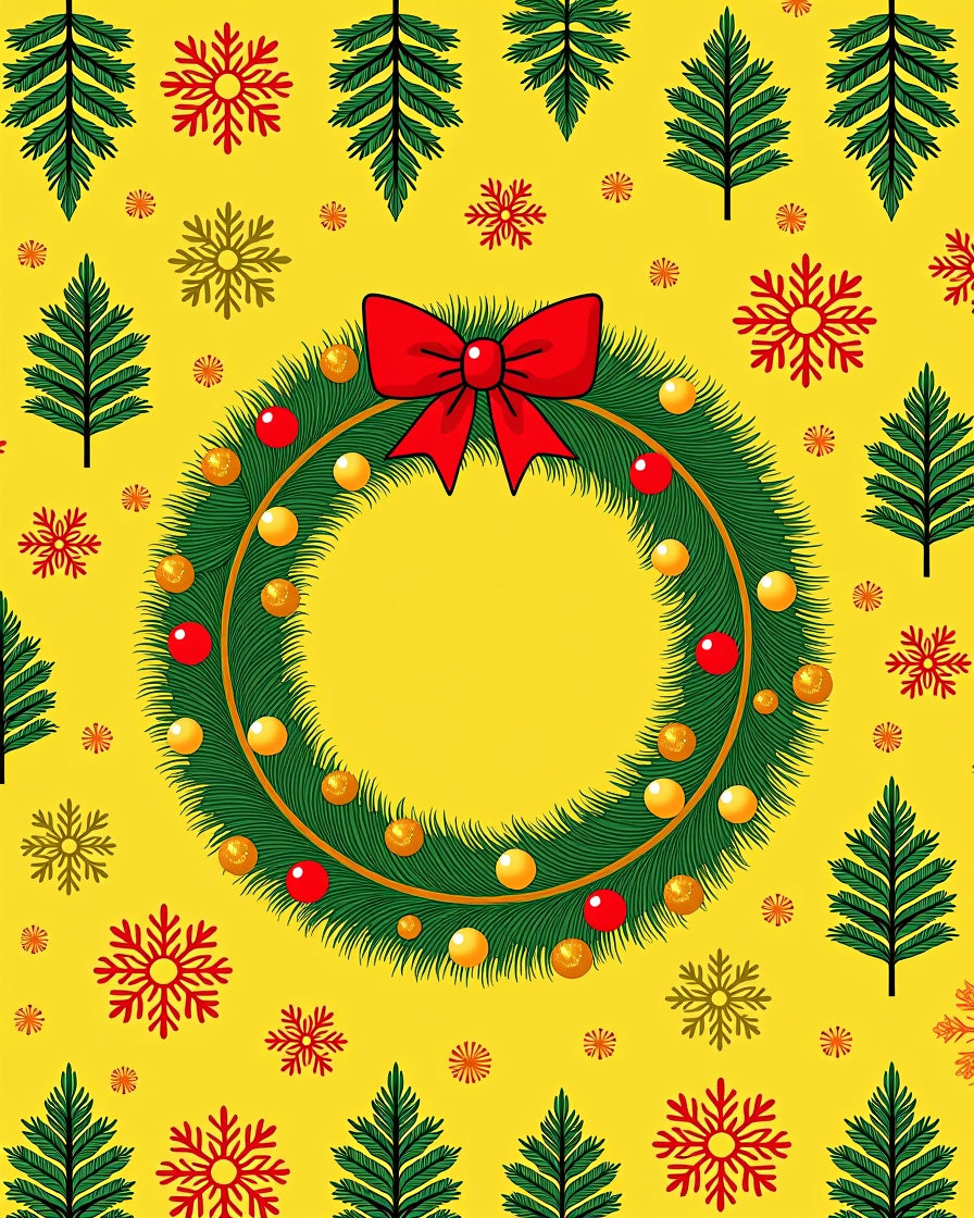 Festive Pine Wreath Motif with Holly Berries and Twinkling Lights(Yellow)
