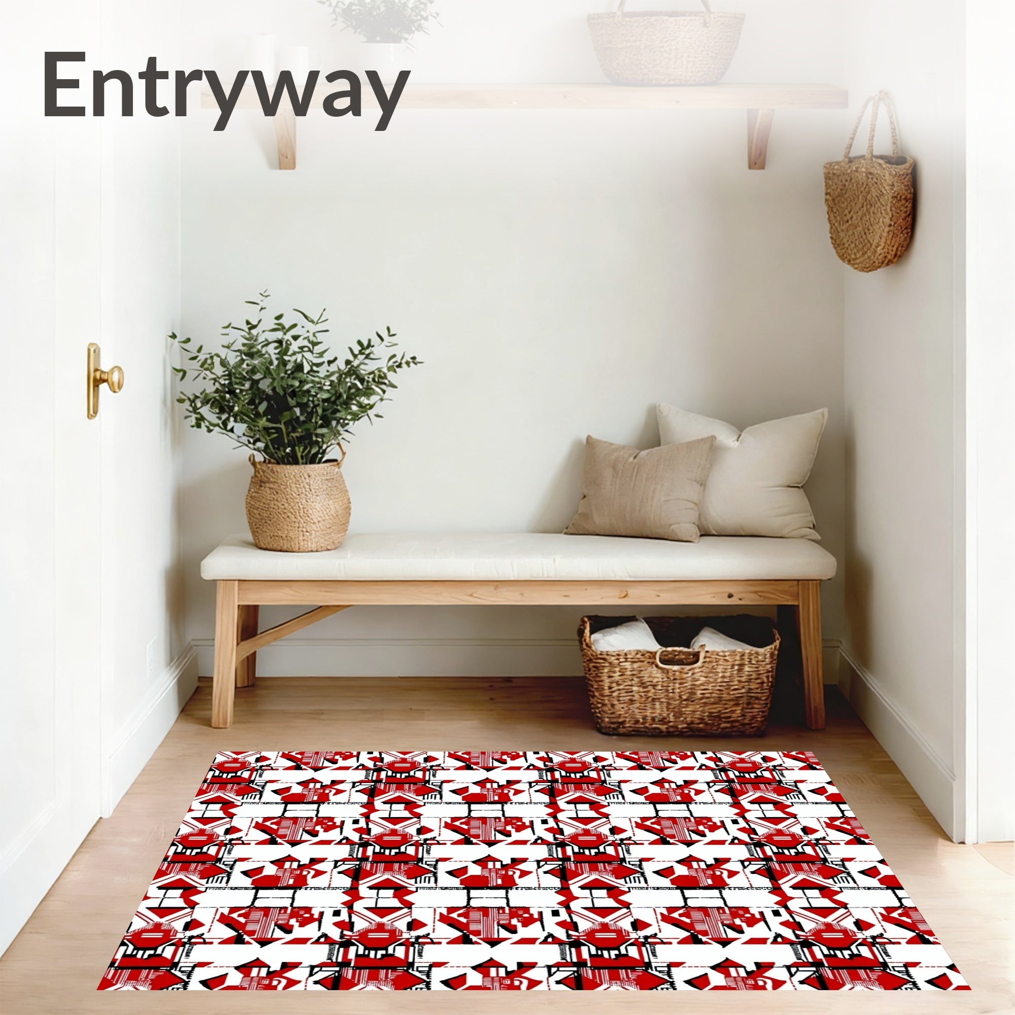 Ultra Soft Area Rug, Non Slip, Stain Resistant, Washable Area Rugs for Living Room, Bedroom, Festive Plaid Accent with Interlocking Square Motifs(Red) Overview: