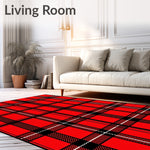 Flatwoven High Traffic Area Rug, Festive Plaid Holiday Celebration, Non Slip, Stain Resistant, Washable Area Rugs for Living Room, Bedroom (Red) Overview: