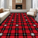 Ultra Soft Area Rug, Non Slip, Stain Resistant, Washable Area Rugs for Living Room, Bedroom, Festive Plaid Holiday With Snowflake Motif(Red) Overview: