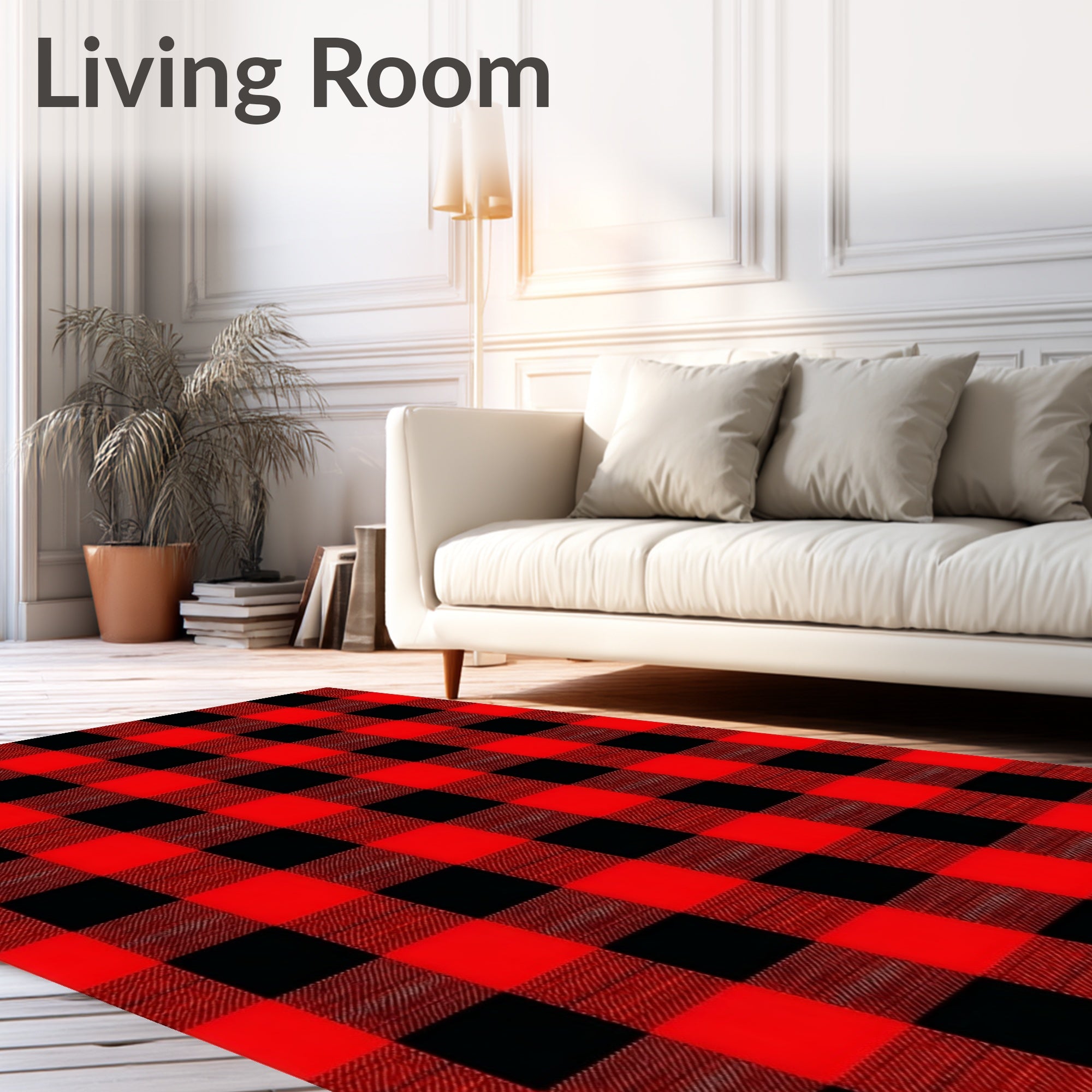 Festive Red Plaid Checkered Area Rug for Front Entryway(Red)