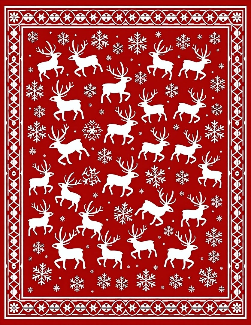 Festive Reindeer Holiday Decorative Floor With Snowflake(Red)