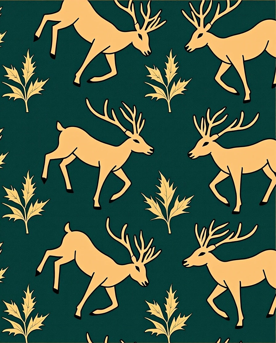 Festive Reindeer Silhouettes with Holly and Pine Needle Motifs(Green)