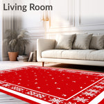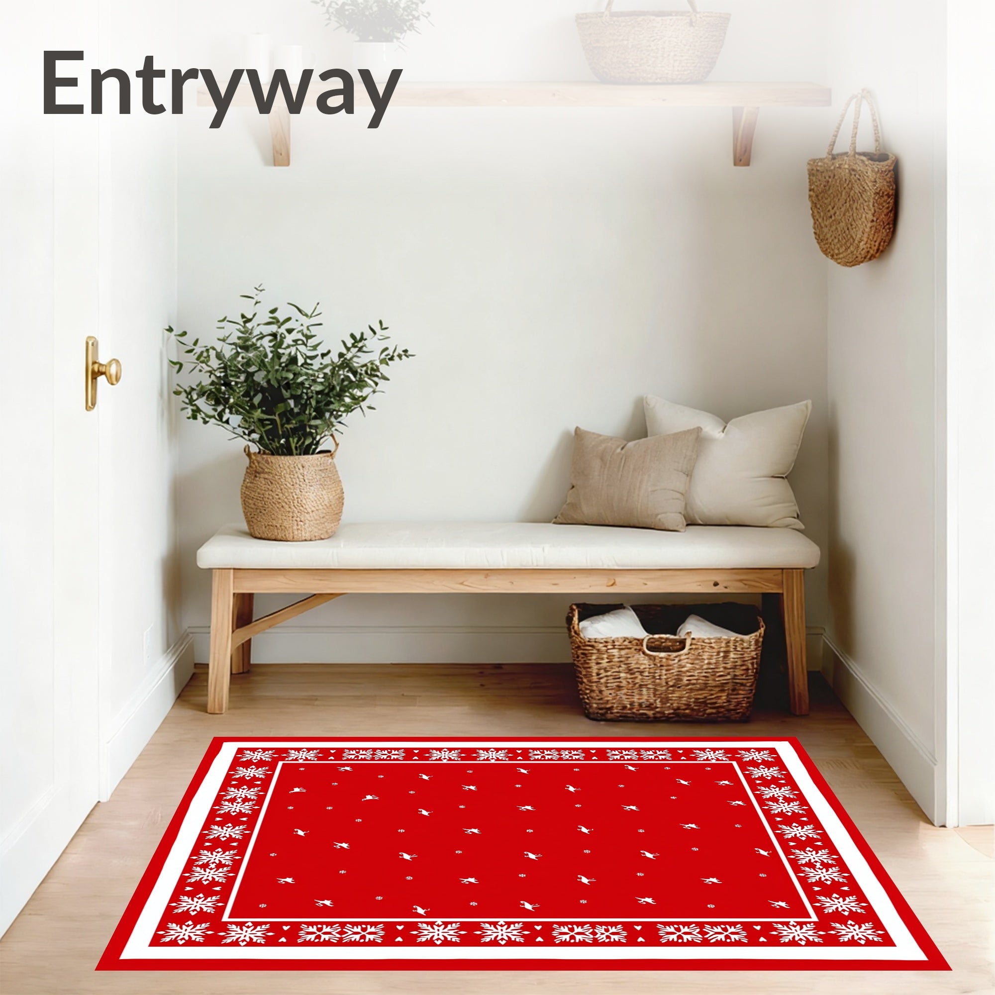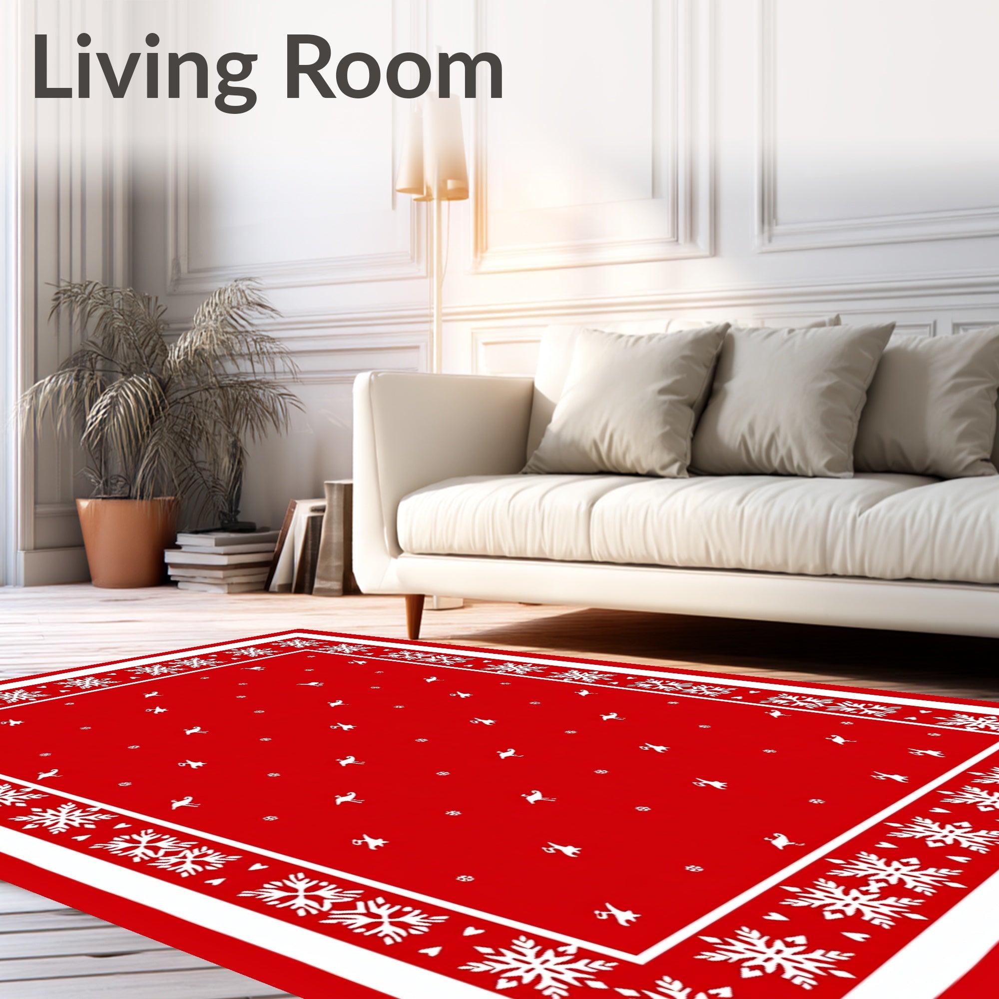 Ultra Soft Area Rug, Non Slip, Stain Resistant, Washable Area Rugs for Living Room, Bedroom, Festive Reindeer Wonderland Holiday Decorative Accent(Red) Overview: