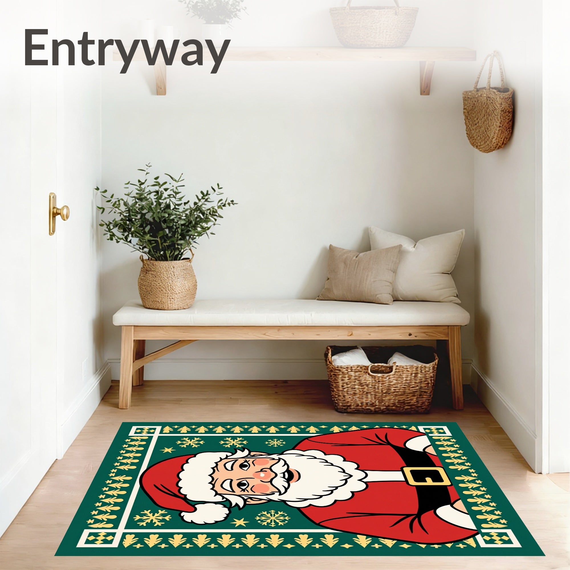 Ultra Soft Area Rug, Non Slip, Stain Resistant, Washable Area Rugs for Living Room, Bedroom, Festive Santa Claus Portrait Christmas Holiday Decorative Area(Green) Overview: