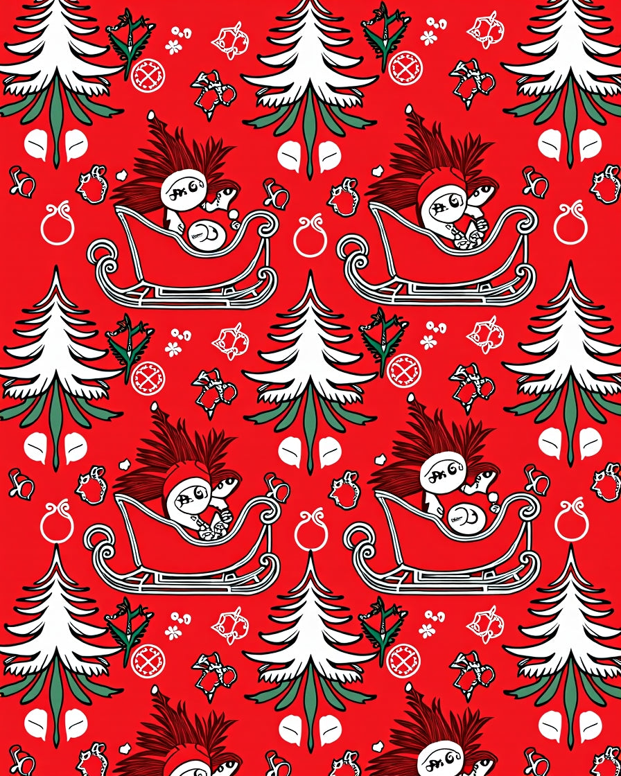 Festive Santa Sleigh and Pine Tree Motif with Snowflake Accents(Red)