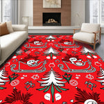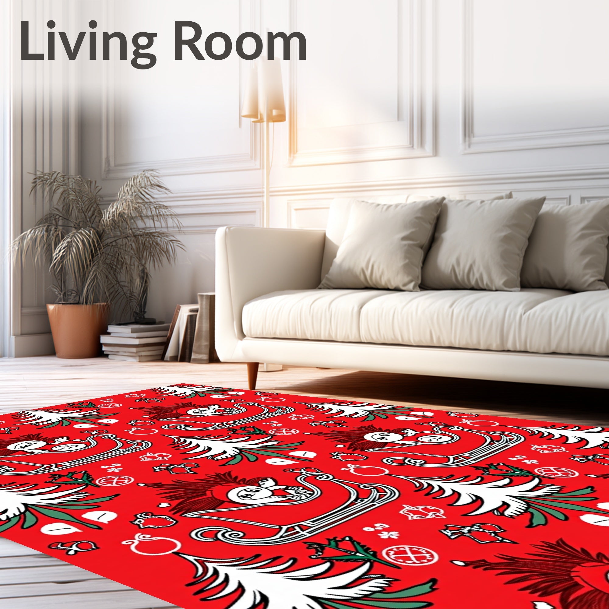 Ultra Soft Area Rug, Non Slip, Stain Resistant, Washable Area Rugs for Living Room, Bedroom, Festive Santa Sleigh and Pine Tree Motif with Snowflake Accents(Red) Overview: