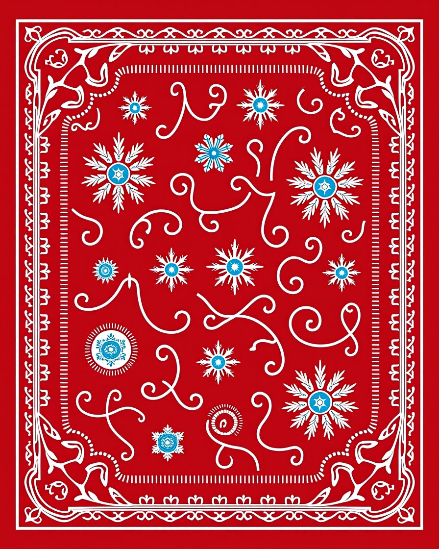 Festive Scrollwork with Interlocking Snow Crystal Details(Red)