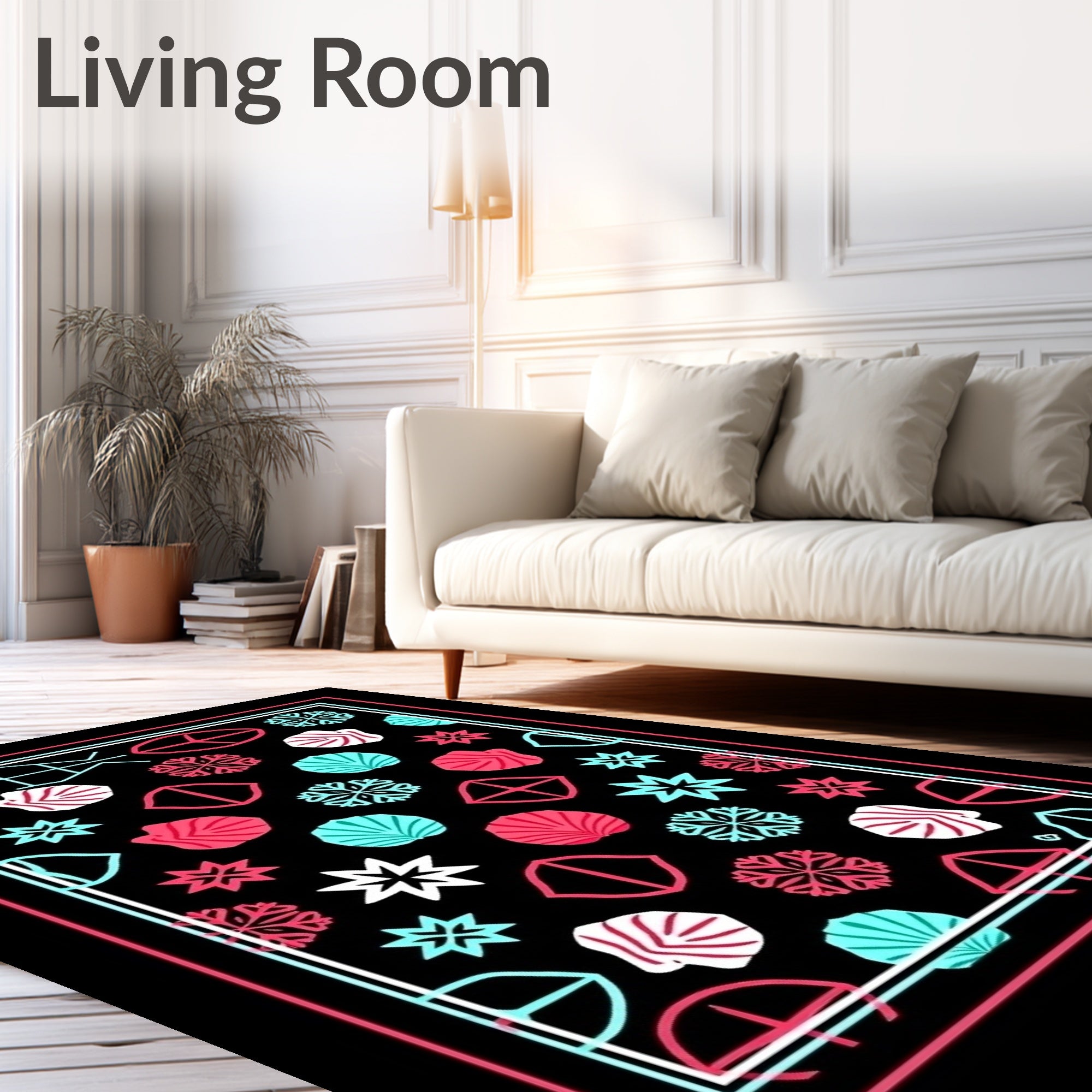 Ultra Soft Area Rug, Non Slip, Stain Resistant, Washable Area Rugs for Living Room, Bedroom, Festive Seashell Wonderland Motif with Whimsical Holiday Accents(Black) Overview: