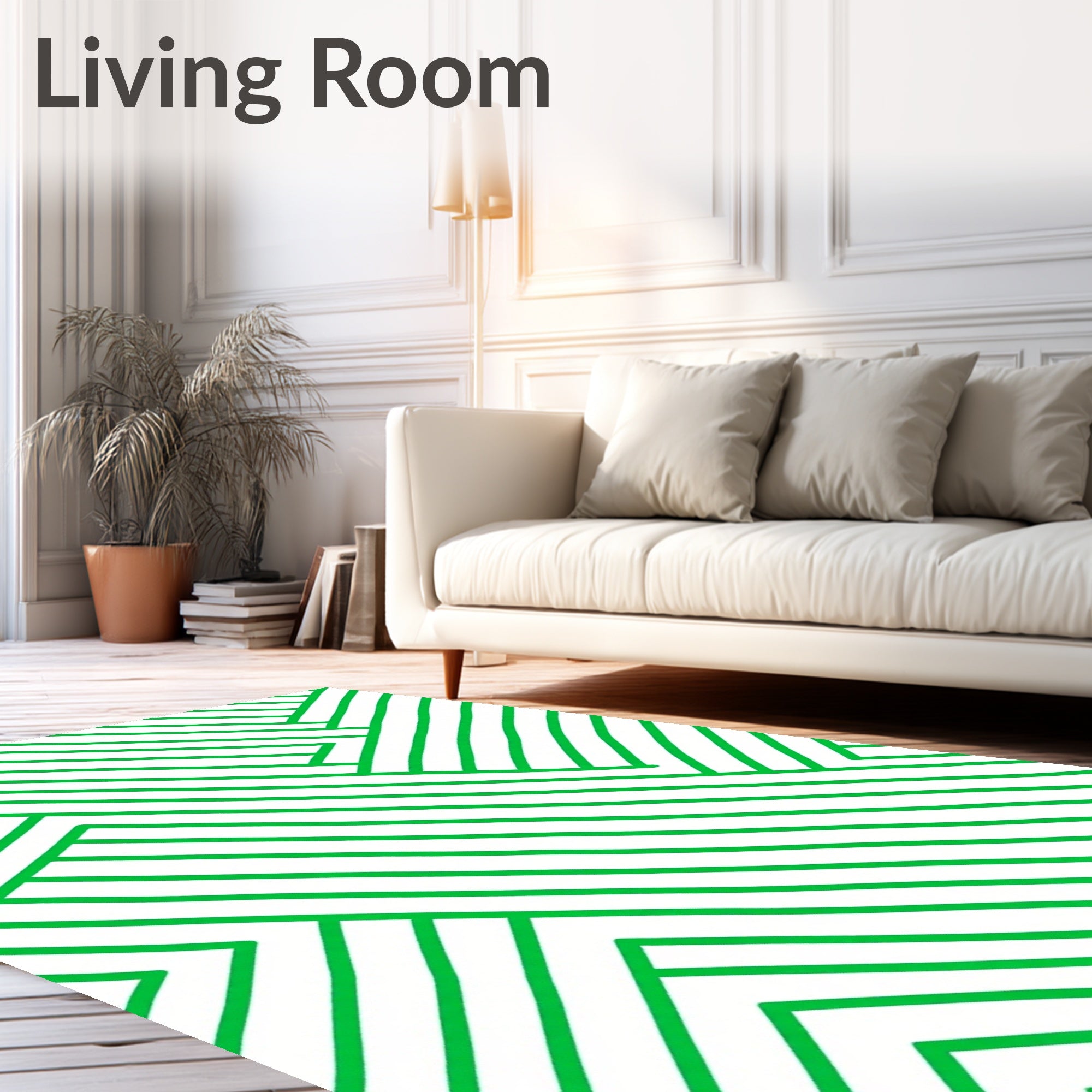 Ultra Soft Area Rug, Non Slip, Stain Resistant, Washable Area Rugs for Living Room, Bedroom, Festive Shadow Stripe With Abstract Zigzag Linework(Green) Overview: