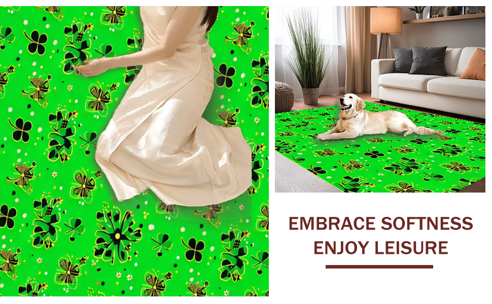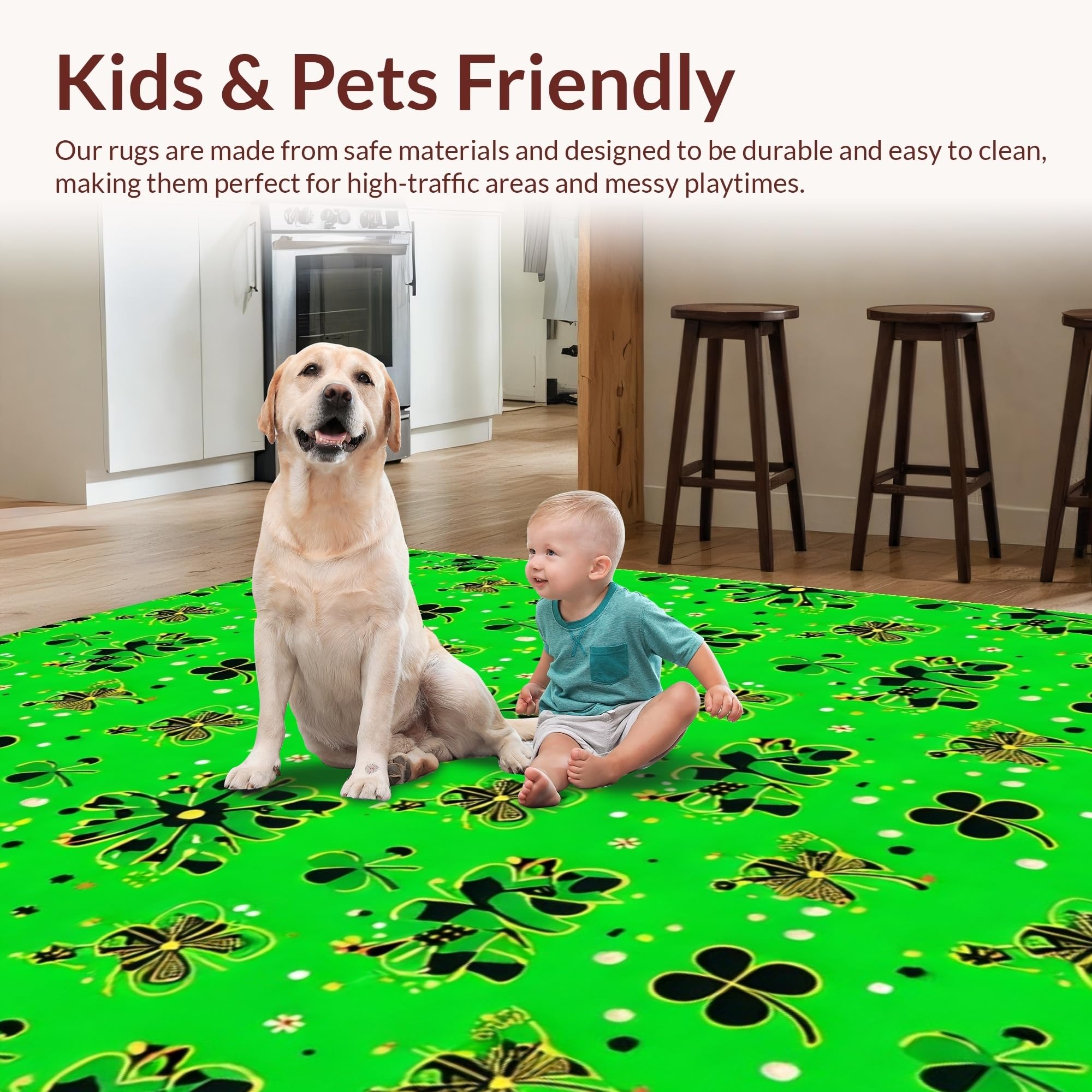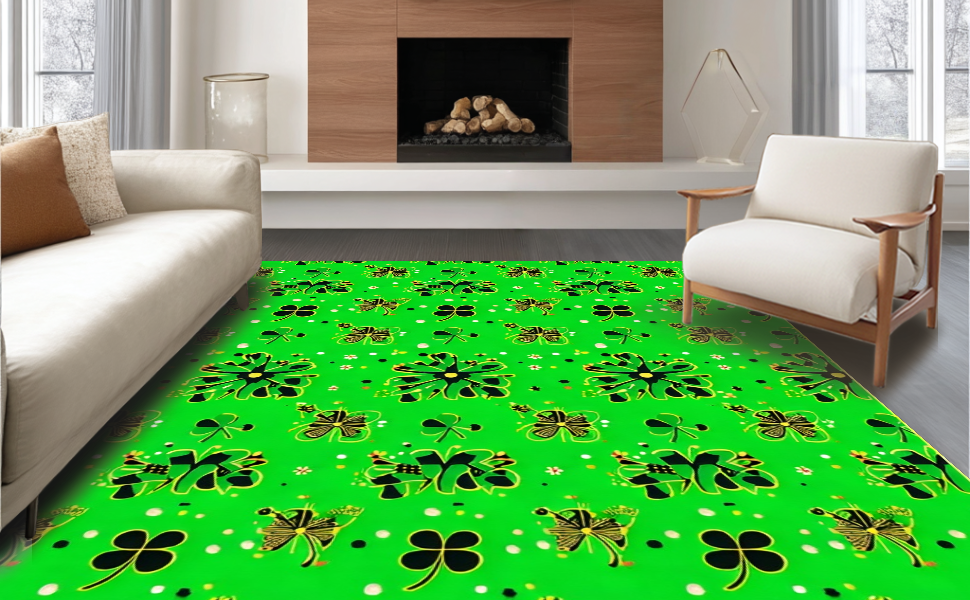 Ultra Soft Area Rug, Non Slip, Stain Resistant, Washable Area Rugs for Living Room, Bedroom, Festive Shamrock Inspired Aesthetic(Green) Overview: