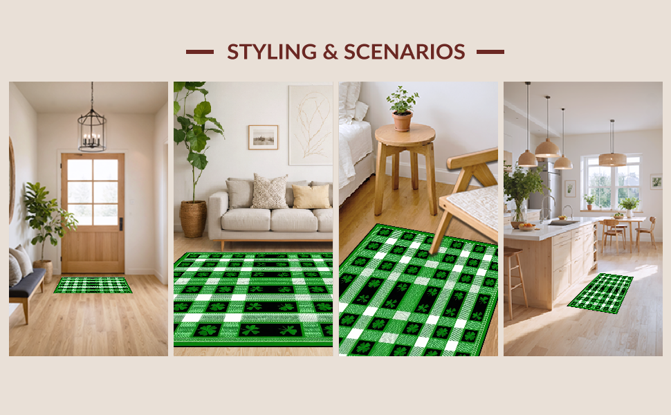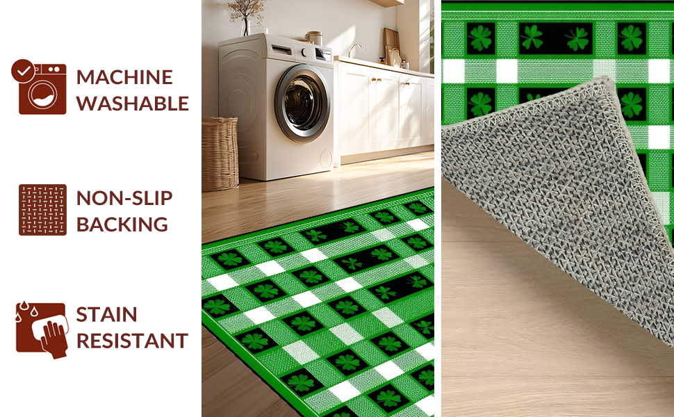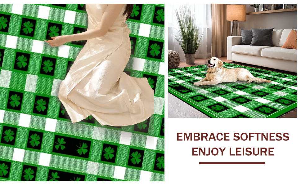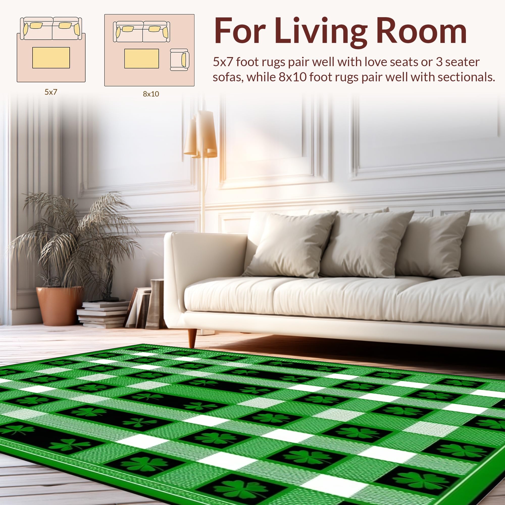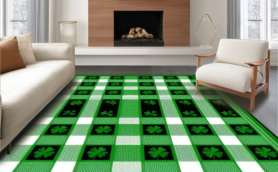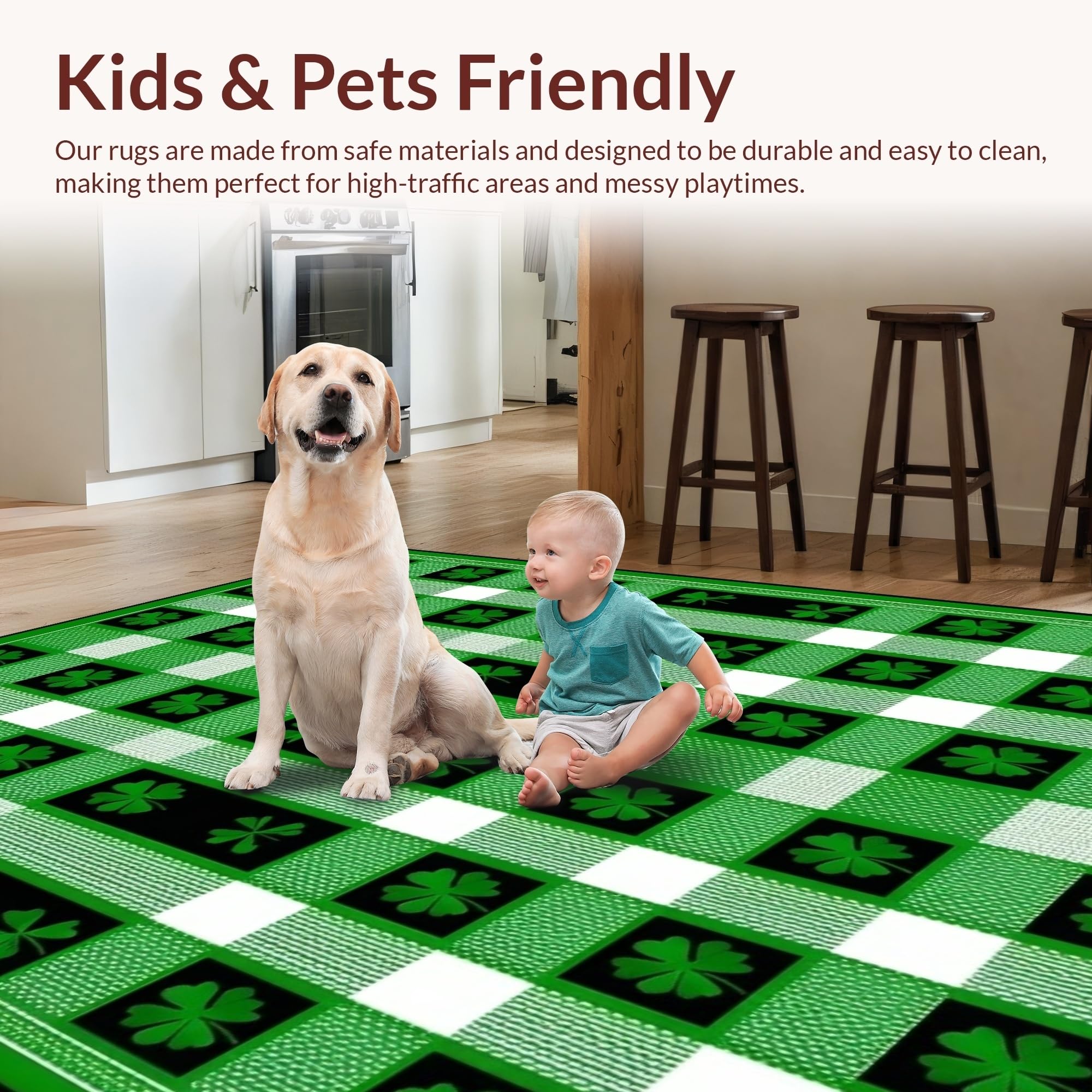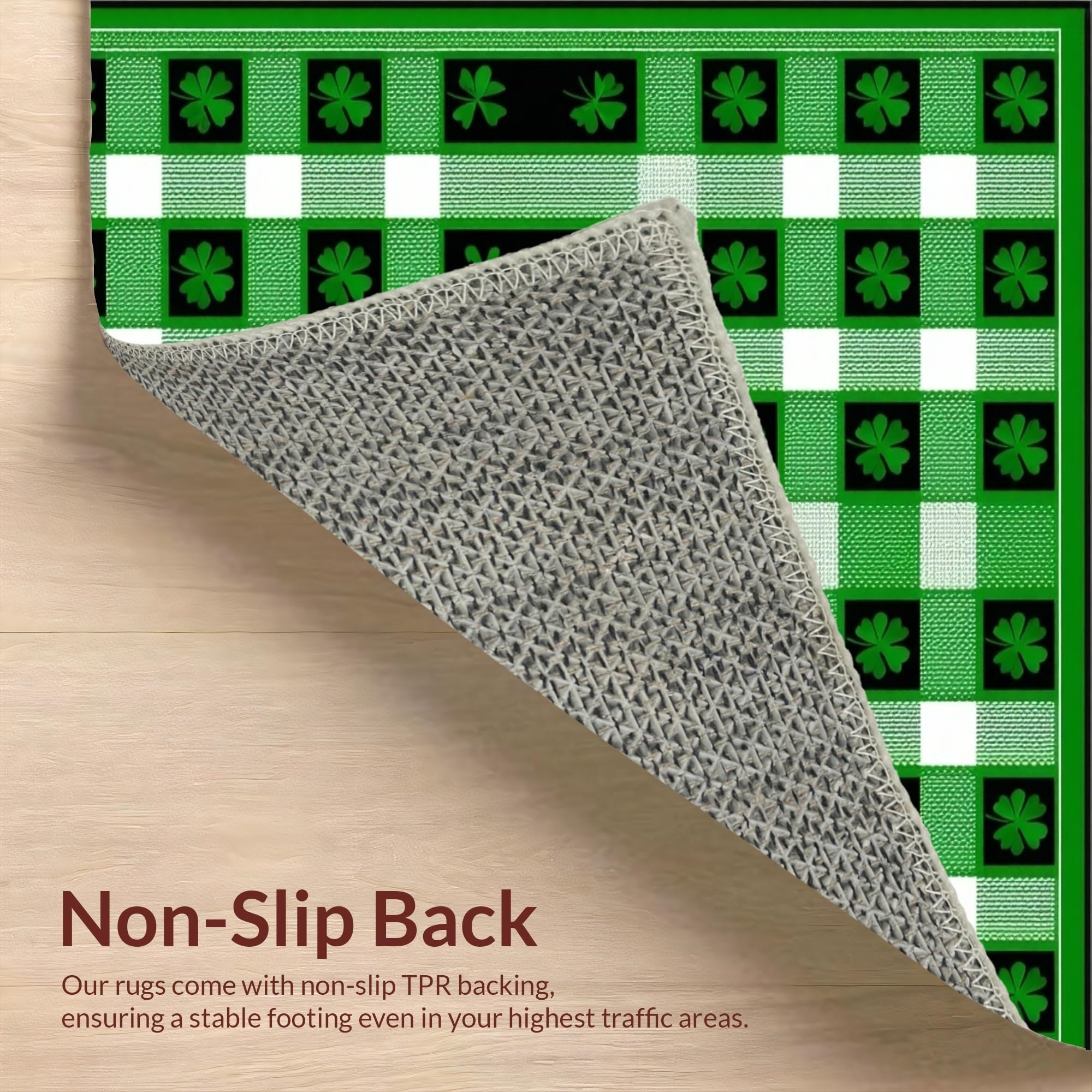 Ultra Soft Area Rug, Non Slip, Stain Resistant, Washable Area Rugs for Living Room, Bedroom, Festive Shamrock Pattern Delight(Green) Overview: