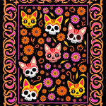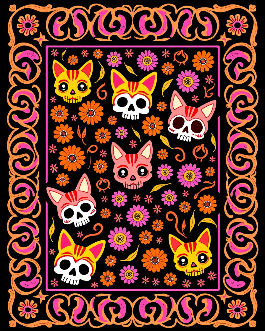 Festive Skeleton Feline Floral Semicircular Welcome(Black)