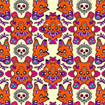 Festive Skull Cats Floral Arch Halloween Entryway Accent(Orange)