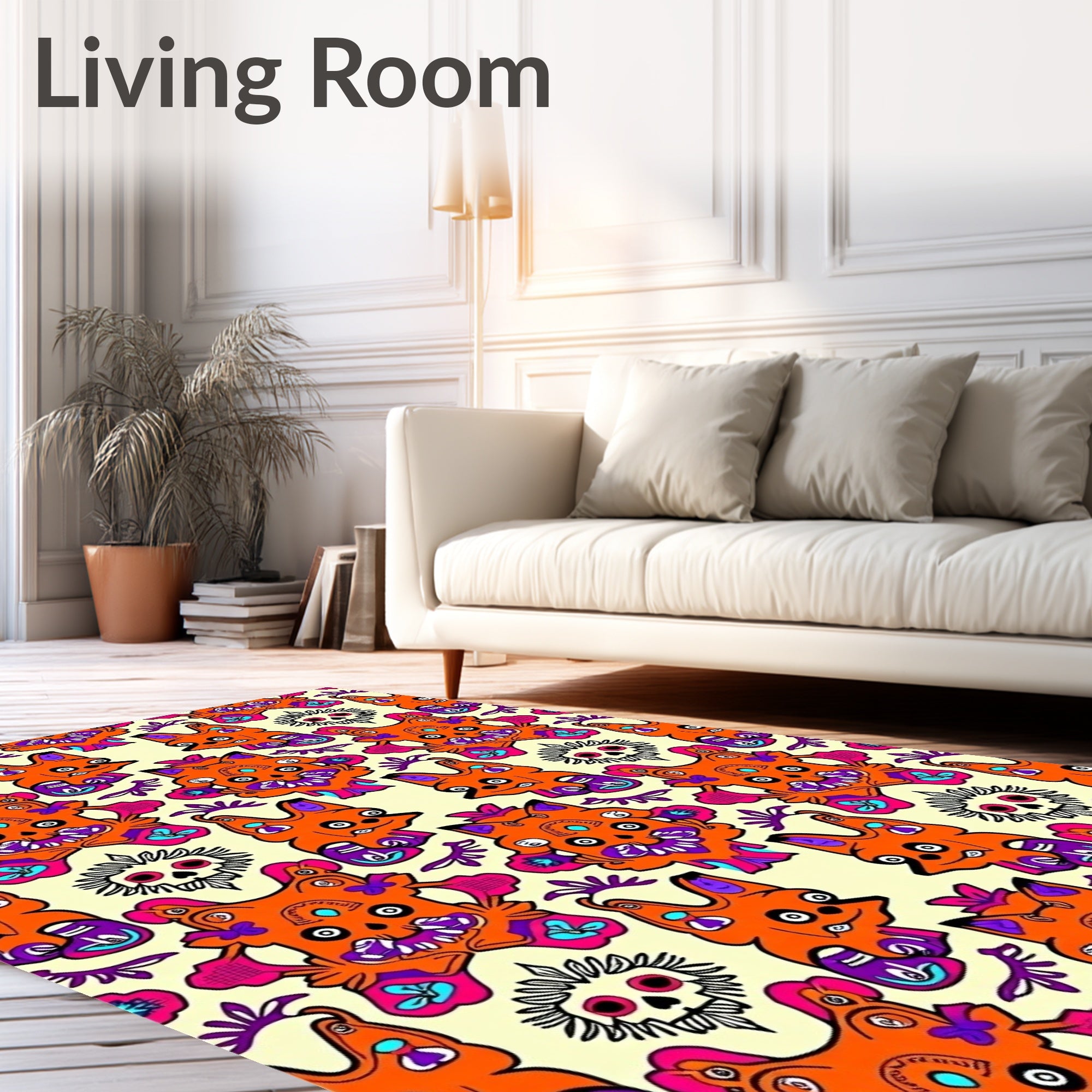 Ultra Soft Area Rug, Non Slip, Stain Resistant, Washable Area Rugs for Living Room, Bedroom, Festive Skull Cats Floral Arch Halloween Entryway Accent(Orange) Overview: