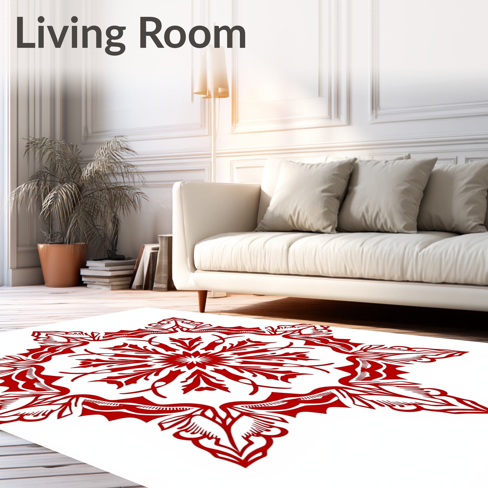 Ultra Soft Area Rug, Non Slip, Stain Resistant, Washable Area Rugs for Living Room, Bedroom, Festive Snowflake Anti Slip Winter Celebration(Red) Overview: