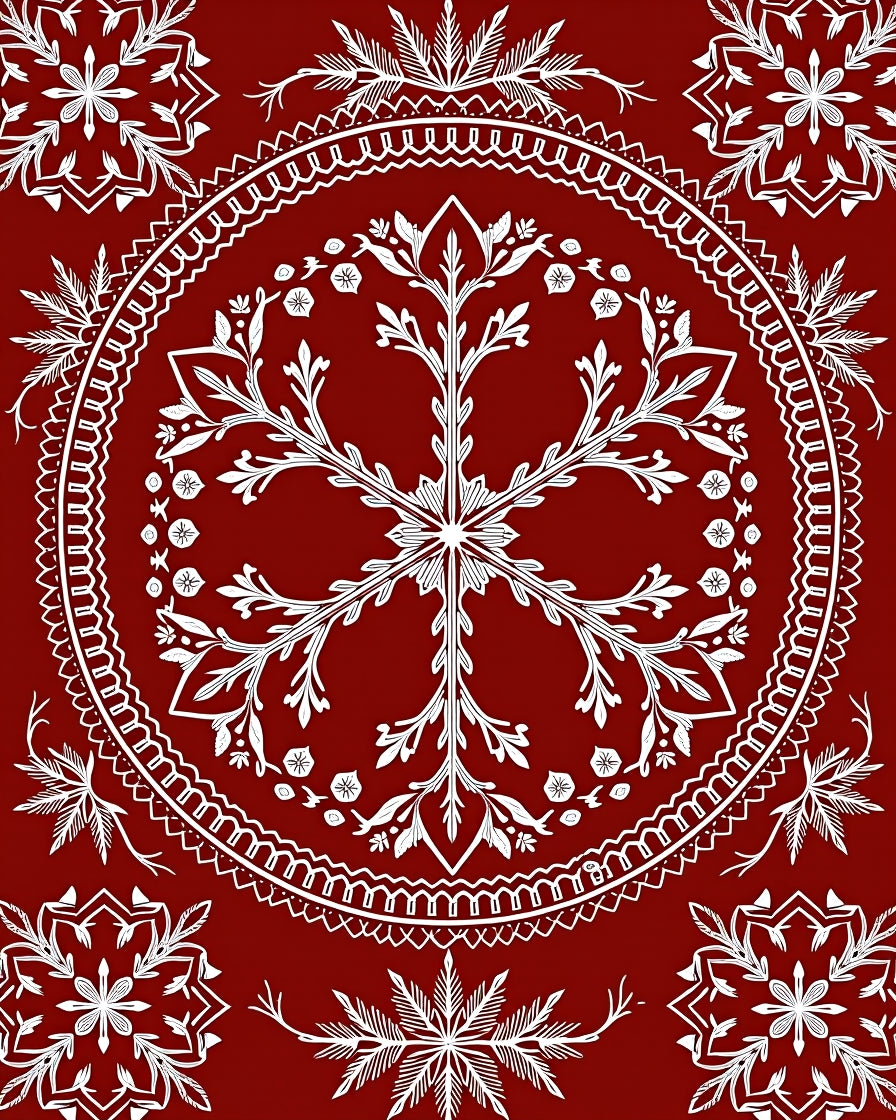 Festive Snowflake Circular Play Holiday Winter Wonderland(Red)