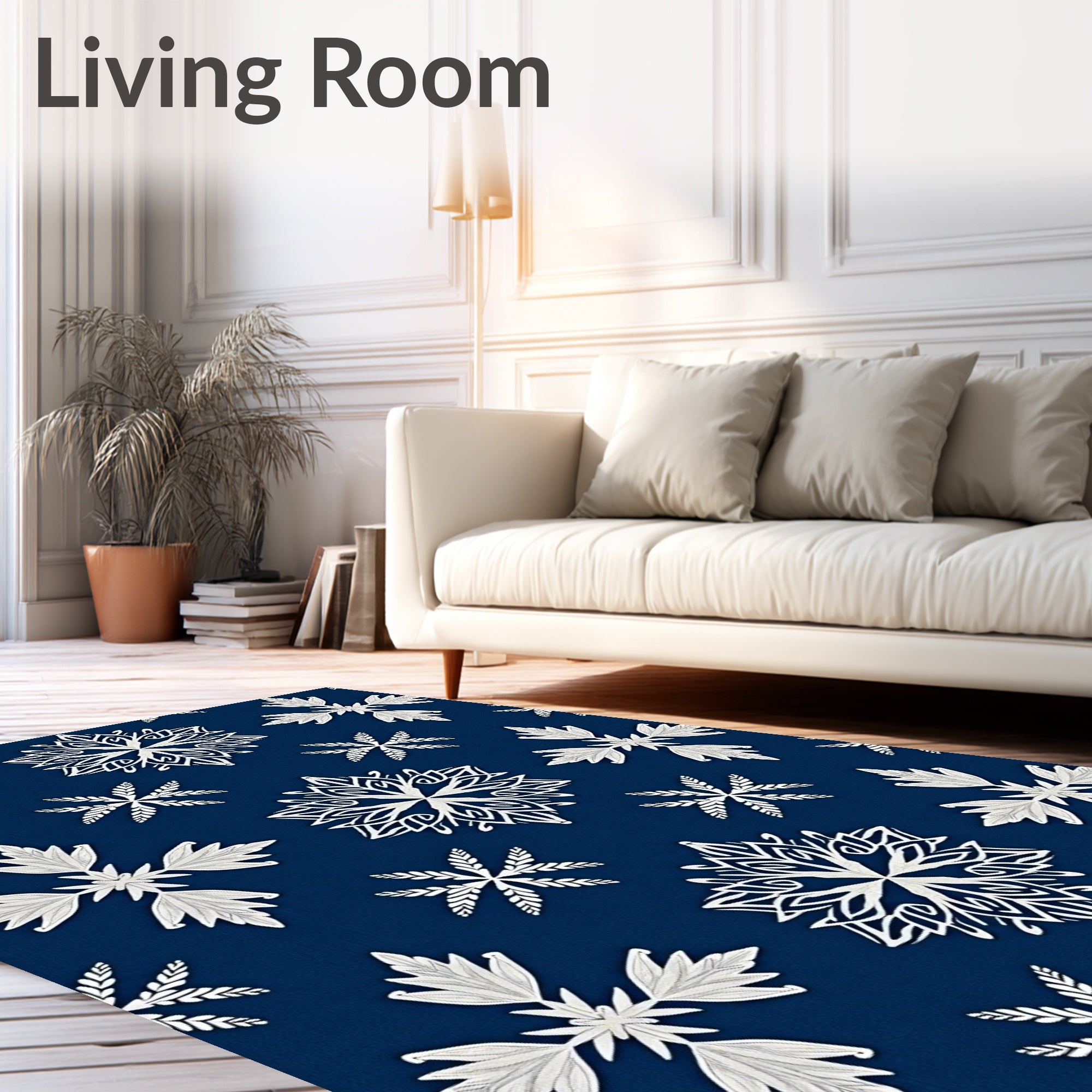 Ultra Soft Area Rug, Non Slip, Stain Resistant, Washable Area Rugs for Living Room, Bedroom, Festive Snowflake Holiday Accent with Intricate Crystal Design(Blue) Overview: