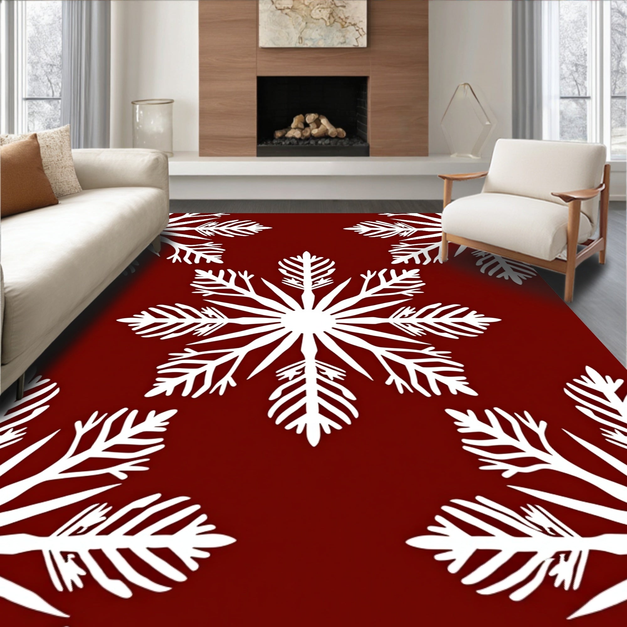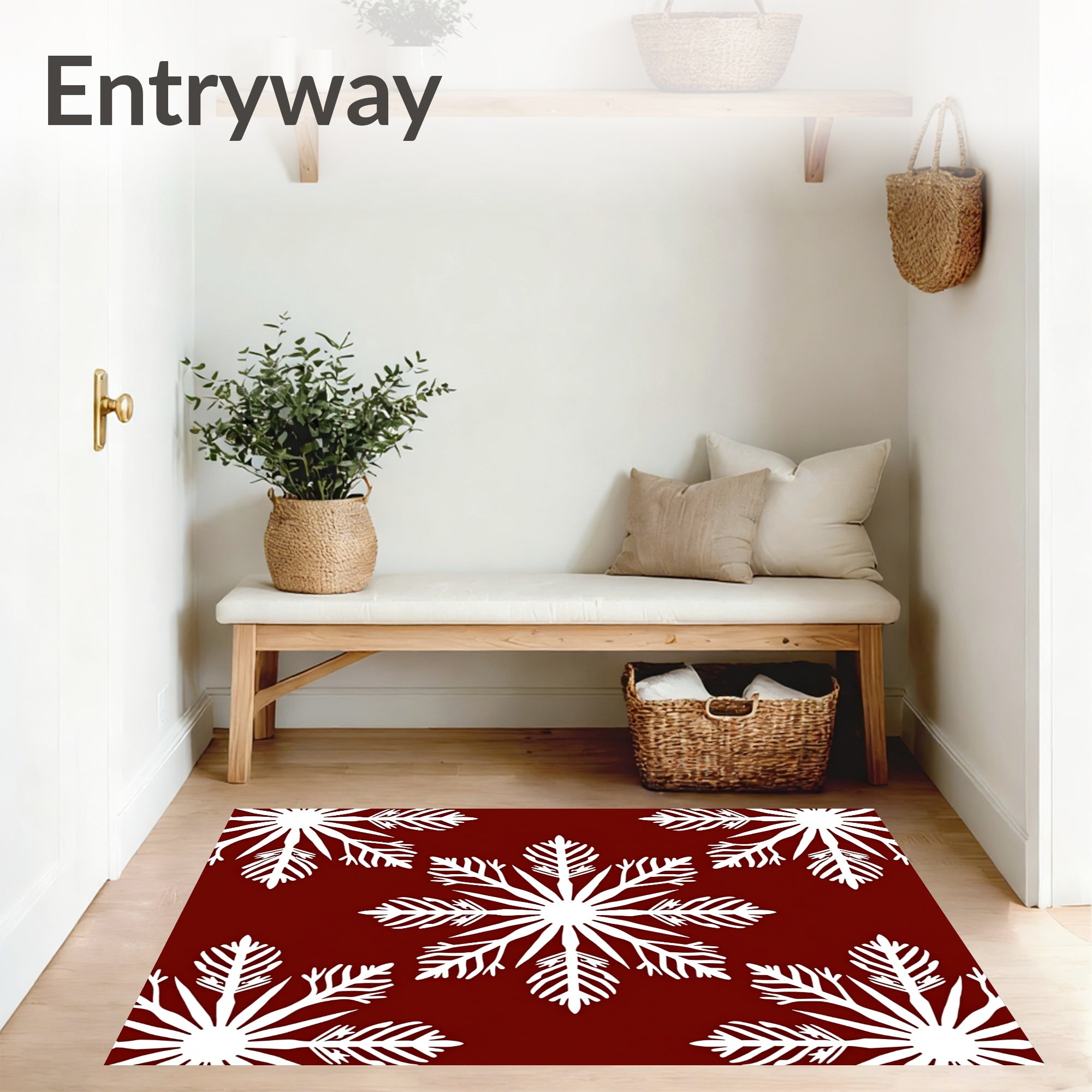 Ultra Soft Area Rug, Non Slip, Stain Resistant, Washable Area Rugs for Living Room, Bedroom, Festive Snowflake Holiday Celebration Accent Doorway Welcome(Red) Overview: