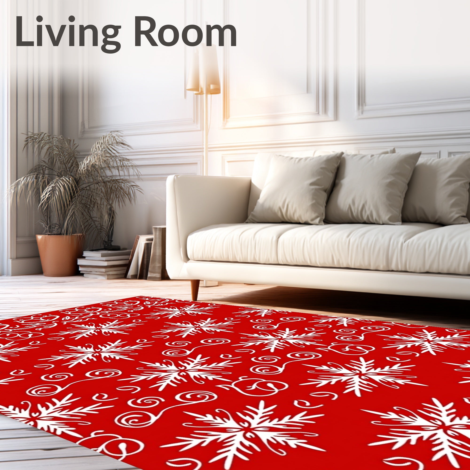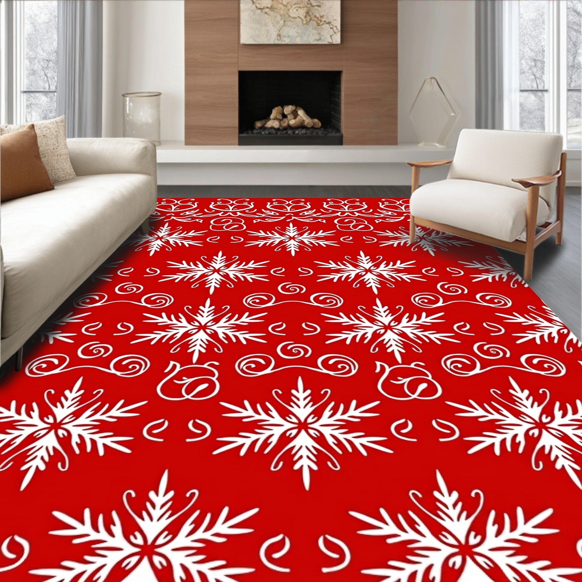 Ultra Soft Area Rug, Non Slip, Stain Resistant, Washable Area Rugs for Living Room, Bedroom, Festive Snowflake Holiday Decorative Accent(Red) Overview: