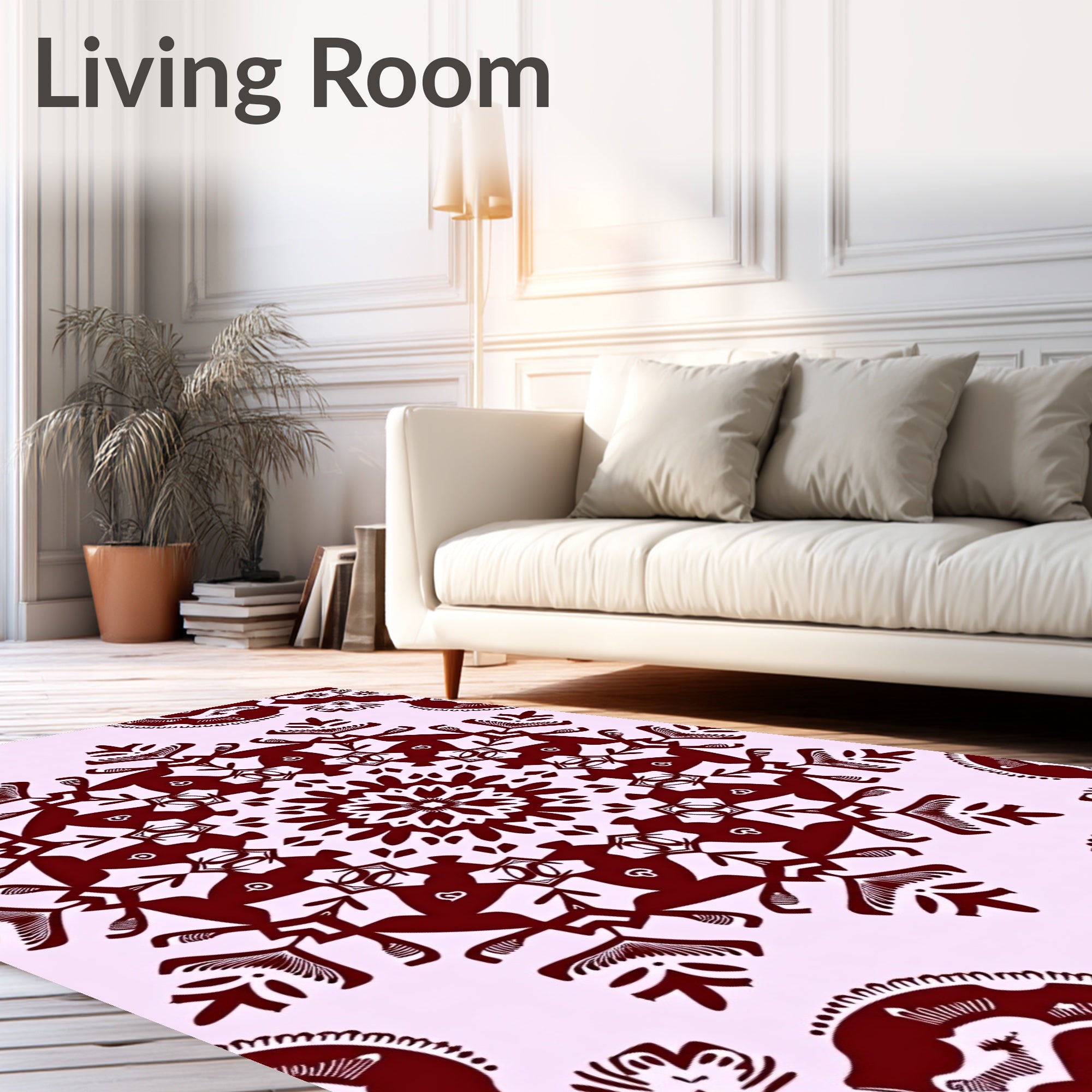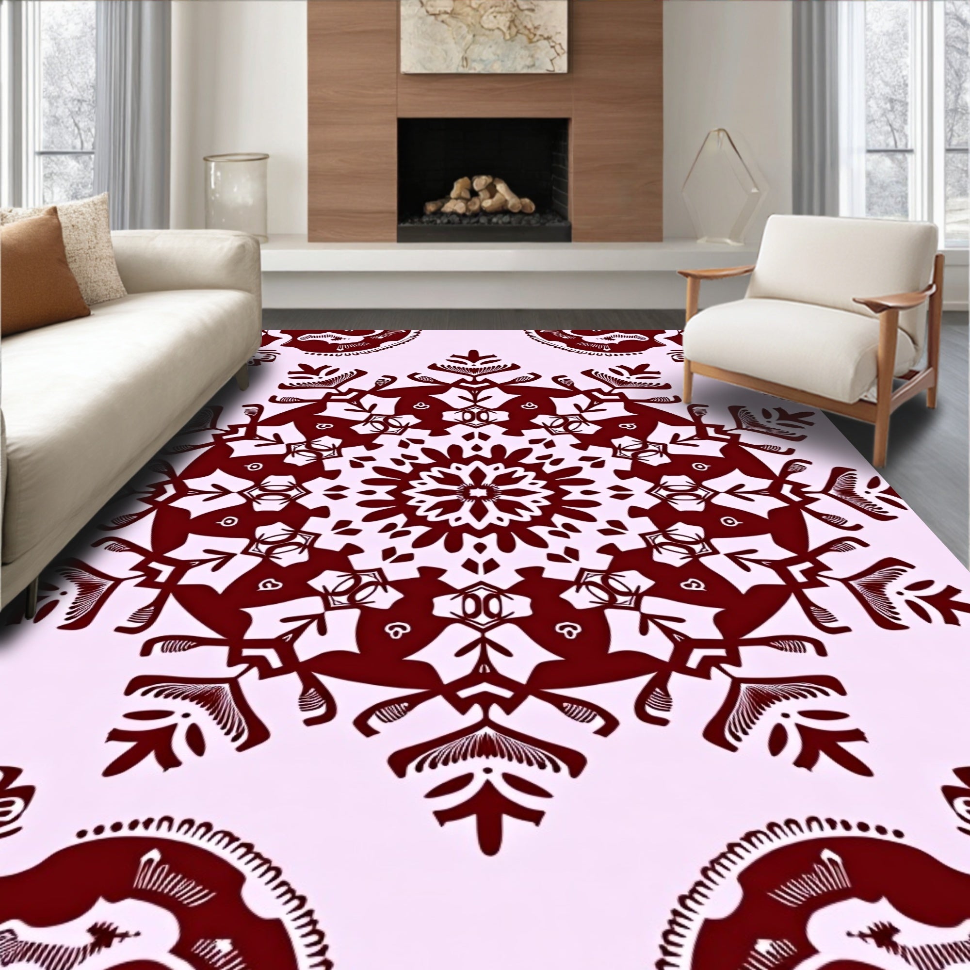Ultra Soft Area Rug, Non Slip, Stain Resistant, Washable Area Rugs for Living Room, Bedroom, Festive Snowflake Holiday Decorative Floor Covering(Red) Overview: