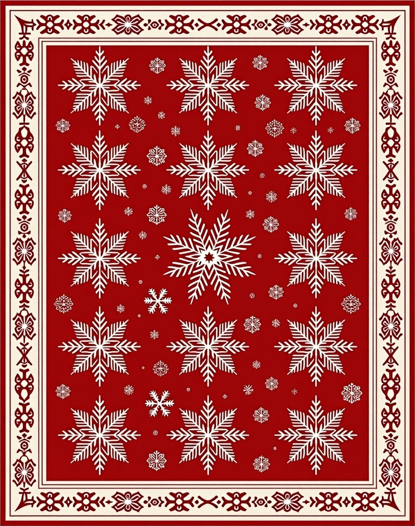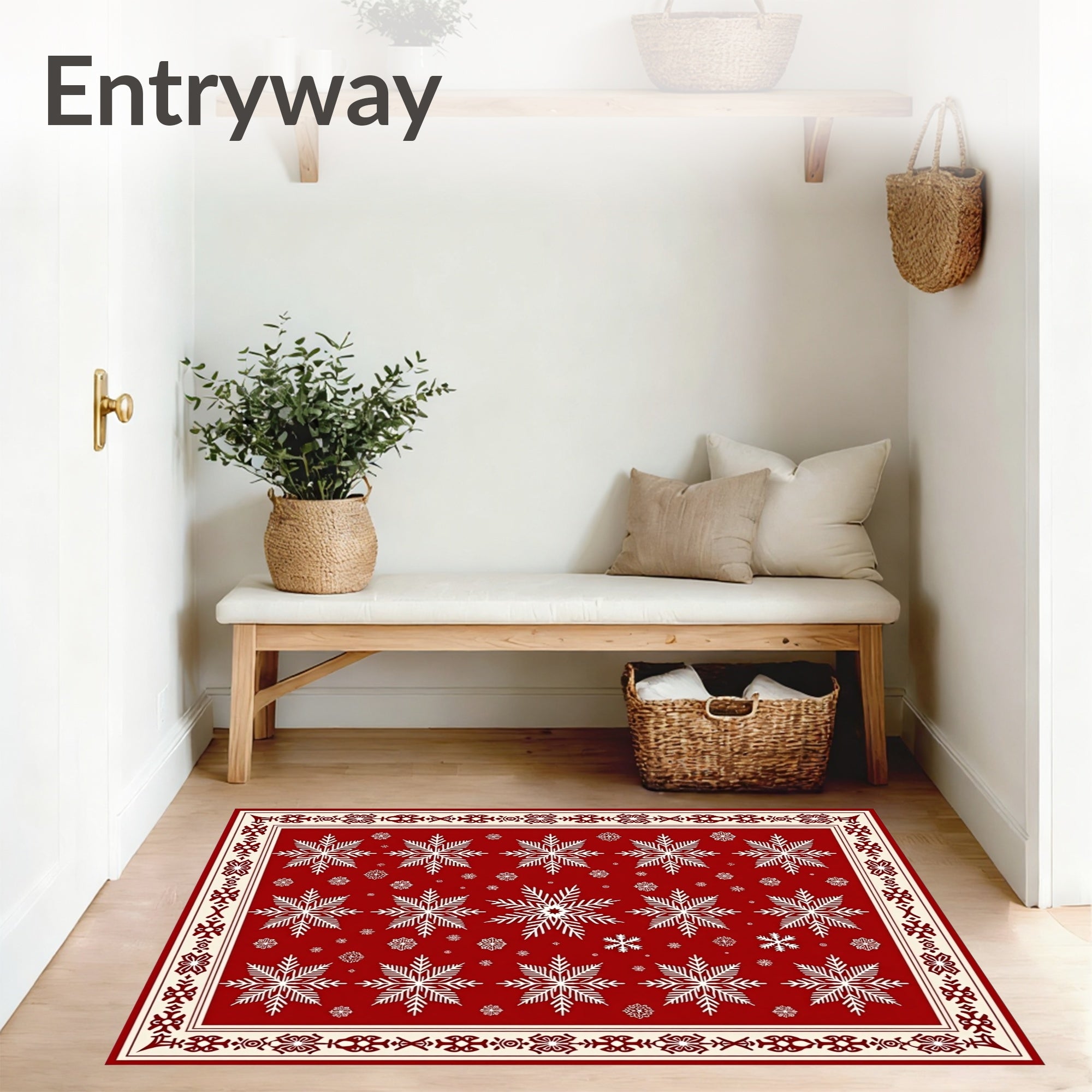 Ultra Soft Area Rug, Non Slip, Stain Resistant, Washable Area Rugs for Living Room, Bedroom, Festive Snowflake Holiday Entryway Decorative(Red) Overview: