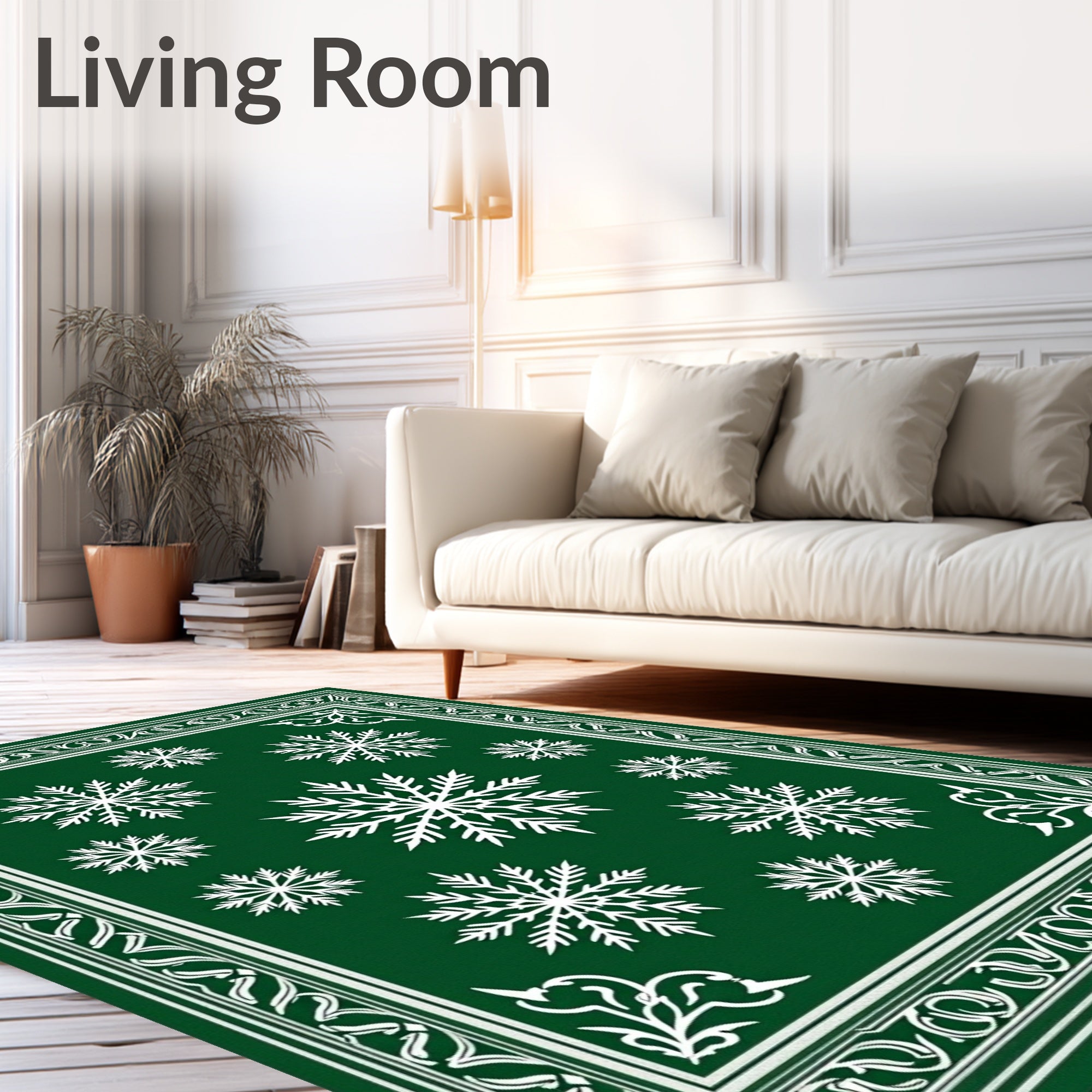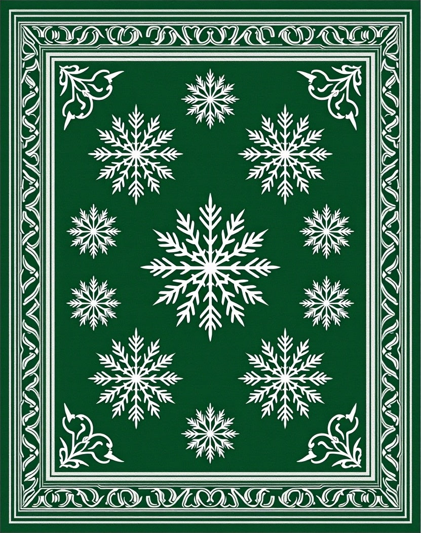 Ultra Soft Area Rug, Non Slip, Stain Resistant, Washable Area Rugs for Living Room, Bedroom, Festive Snowflake Holiday Pathway Decoration Winter Wonderland(Green) Overview: