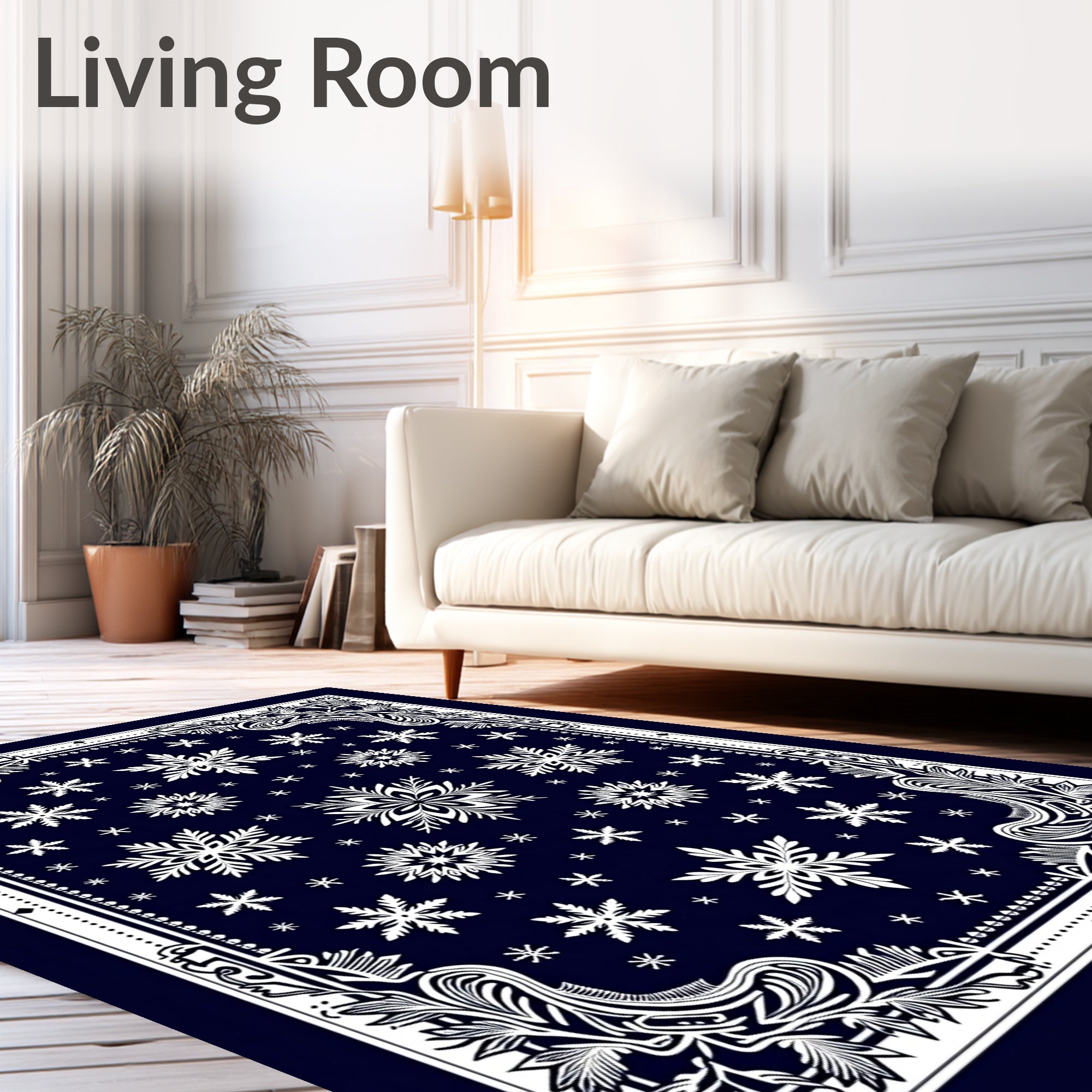 Ultra Soft Area Rug, Non Slip, Stain Resistant, Washable Area Rugs for Living Room, Bedroom, Festive Snowflake Holiday Semi Circle Entrance Welcome(Blue) Overview: